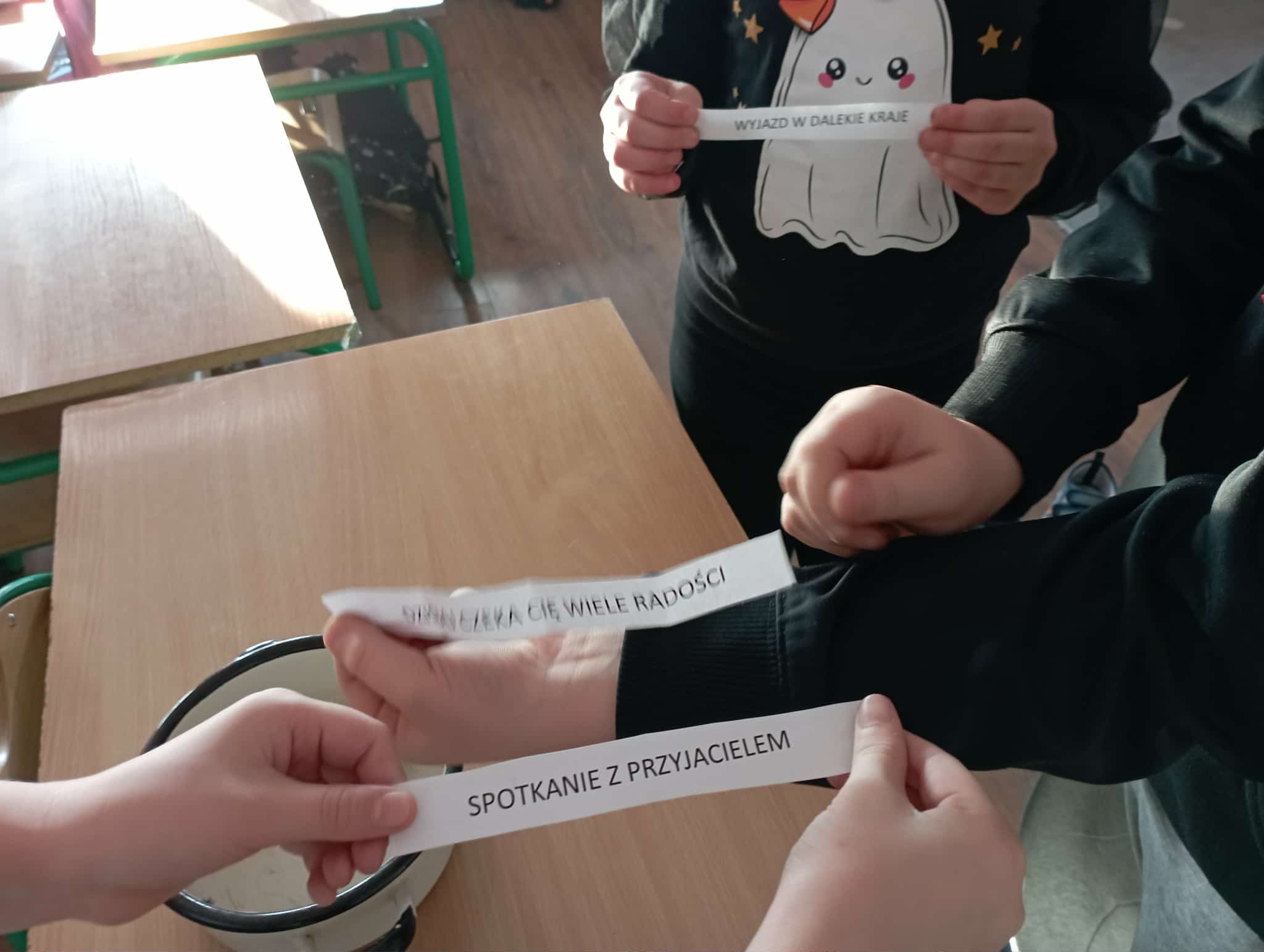 Wróżby andrzejkowe w klasach 1 i 2 W piątek uczniowie klas 1 i 2 uczestniczyli w magicznych zajęciach, poznając tradycje ludowe związane z Andrzejkami. W radosnej atmosferze dzieci brały udział w prostych wróżbach andrzejkowych m.in. lanie wosku przez klucz, wróżba z butów, zaczarowane karteczki, babeczki z niespodzianką oraz w zabawach tanecznych. Dzieci mogły uwierzyć w magię i przez chwilę poczuć się jak prawdziwi czarodzieje. Wspólna zabawa sprawiła wszystkim dużo radości i niezapomnianych doświadczeń.