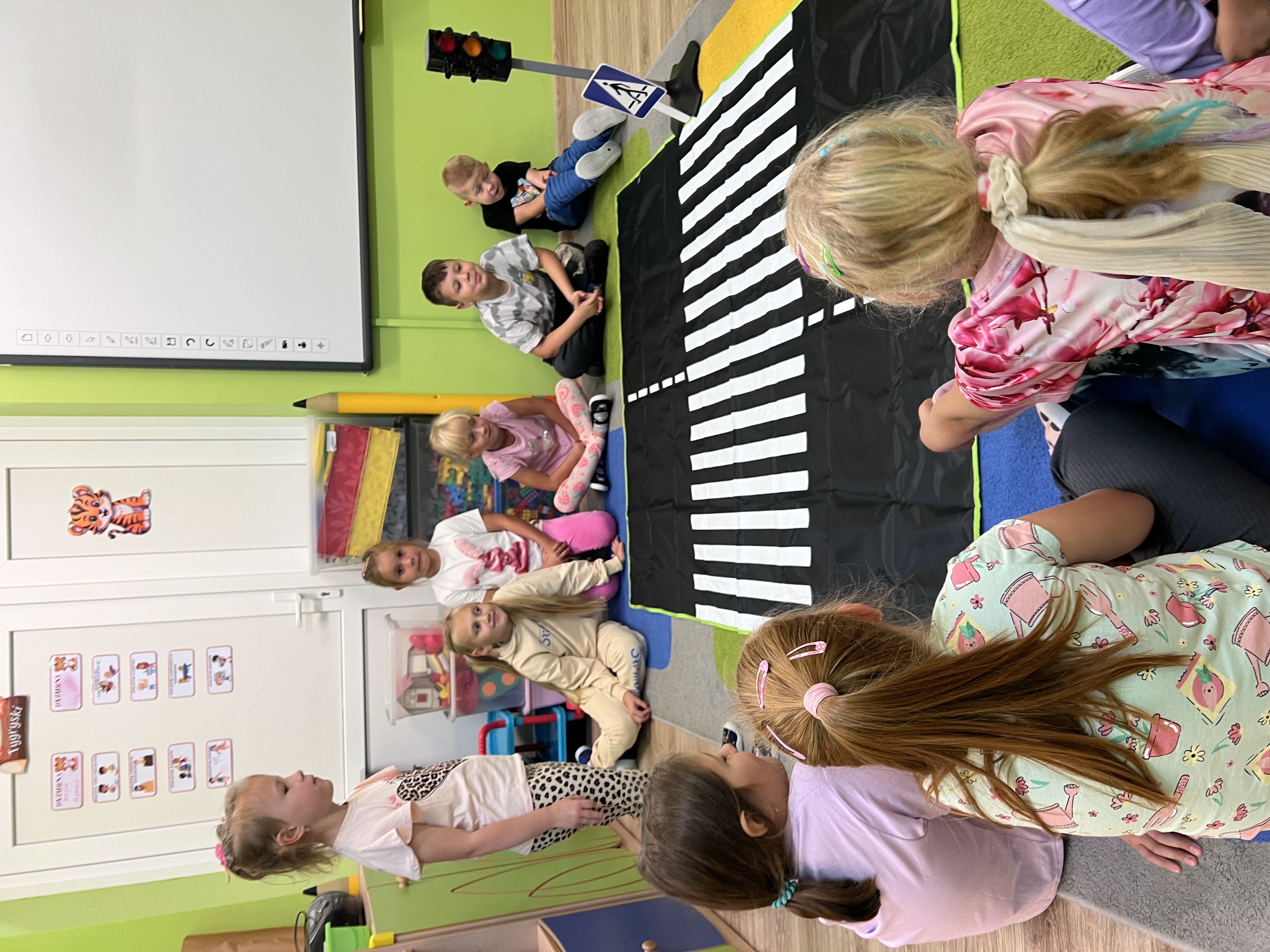 W ubiegłym tygodniu " Tygryski" brały udział w zajęciach poświęconych bezpieczeństwu na drodze. Dzieci poznały znaki drogowe, ćwiczyły prawidłowe przechodzenie przez jezdnię, a także zapoznały się z numerem alarmowym 112 oraz sytuacjami, w których należy go używać. Tydzień upłynął w atmosferze świetnej zabawy połączonej z nauką. Był to czas pełen cennych doświadczeń, które na pewno pomogą dzieciom czuć się bezpieczniej na drodze.