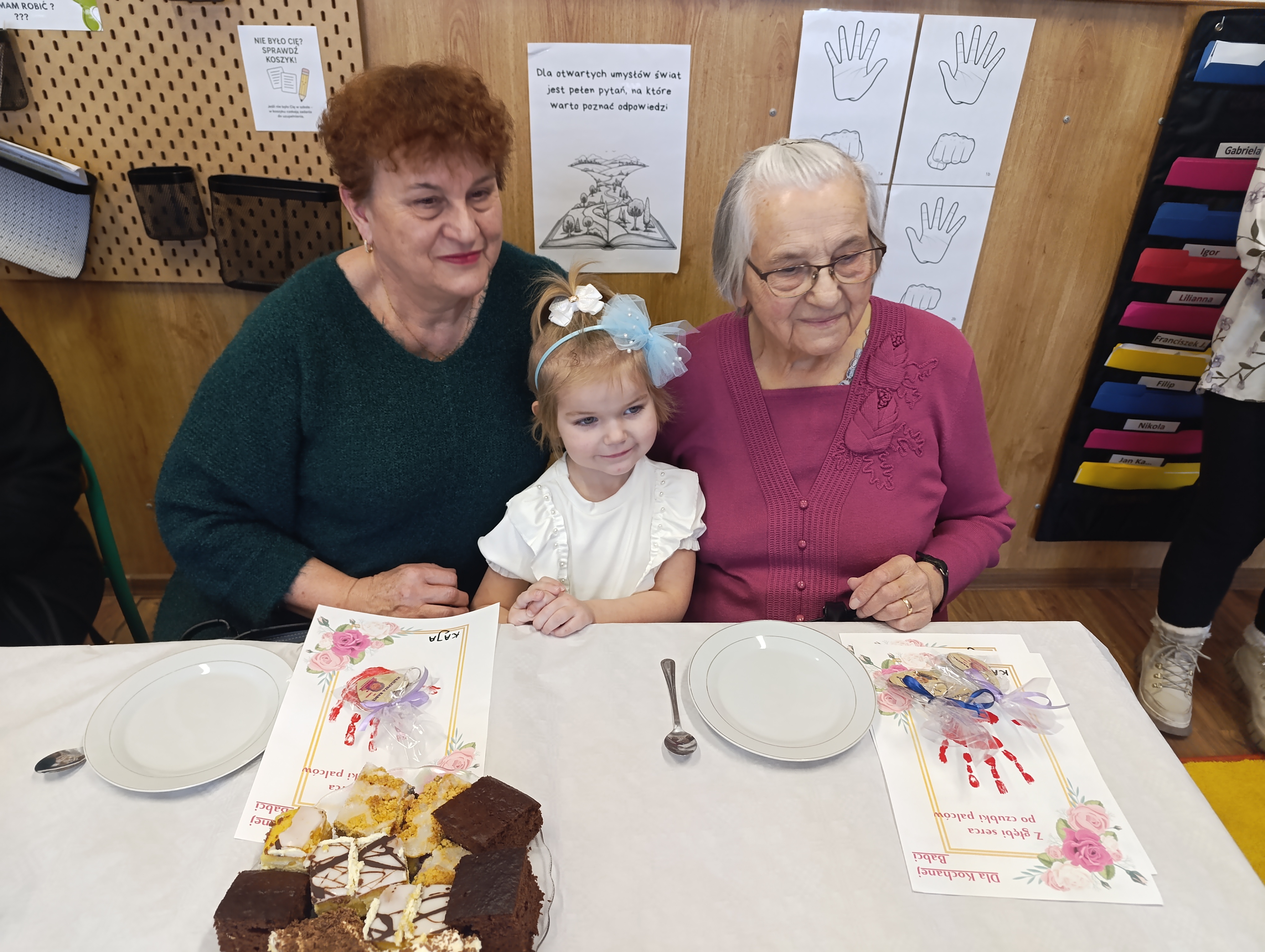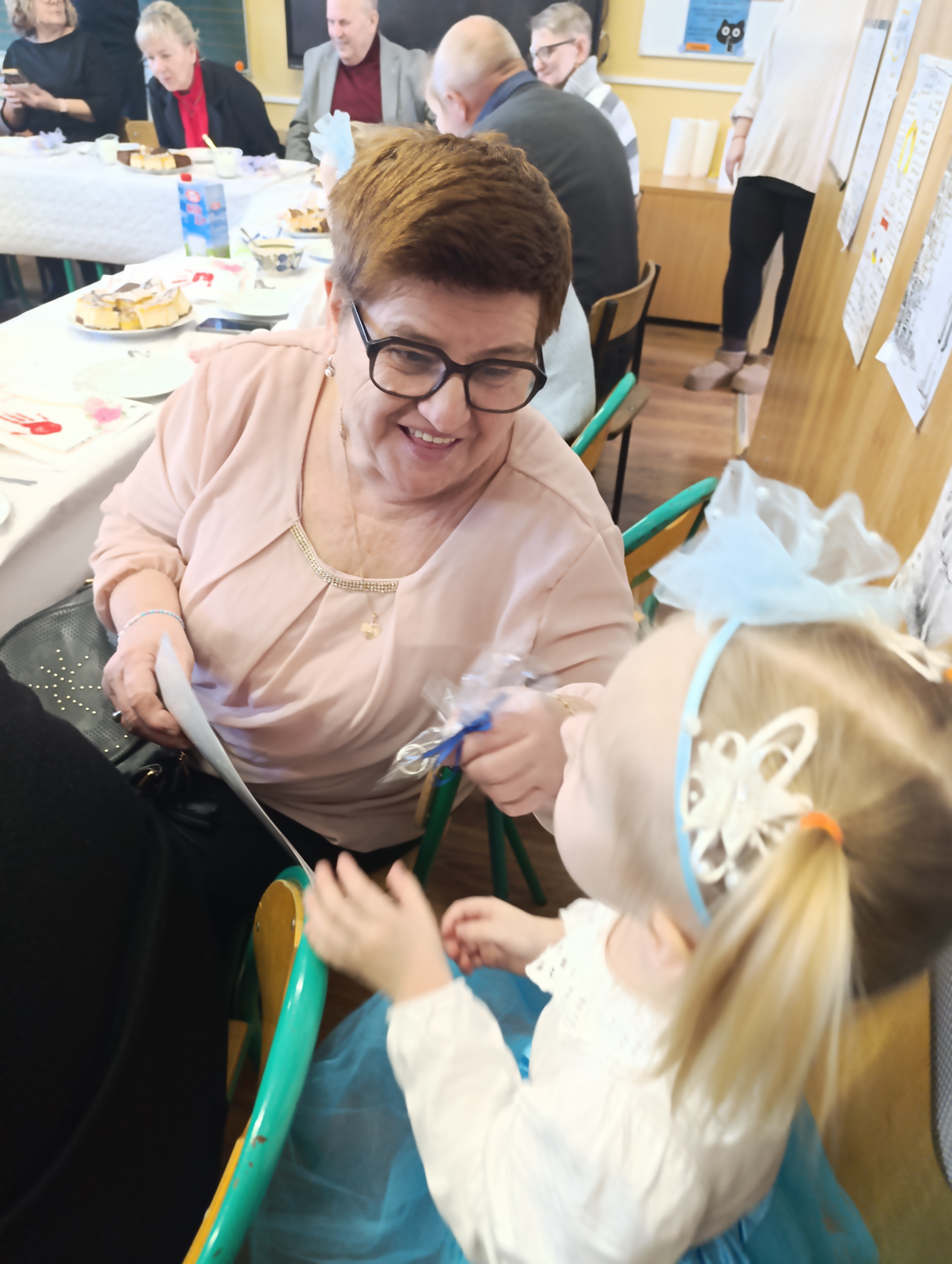 Po części artystycznej dzieci wręczyły swoim Babciom i Dziadkom własnoręcznie wykonane prezenty, wywołując wiele wzruszeń i uśmiechów. Na zakończenie spotkania na wszystkich czekał słodki poczęstunek, podczas którego był czas na wspólne rozmowy i miłe chwile.