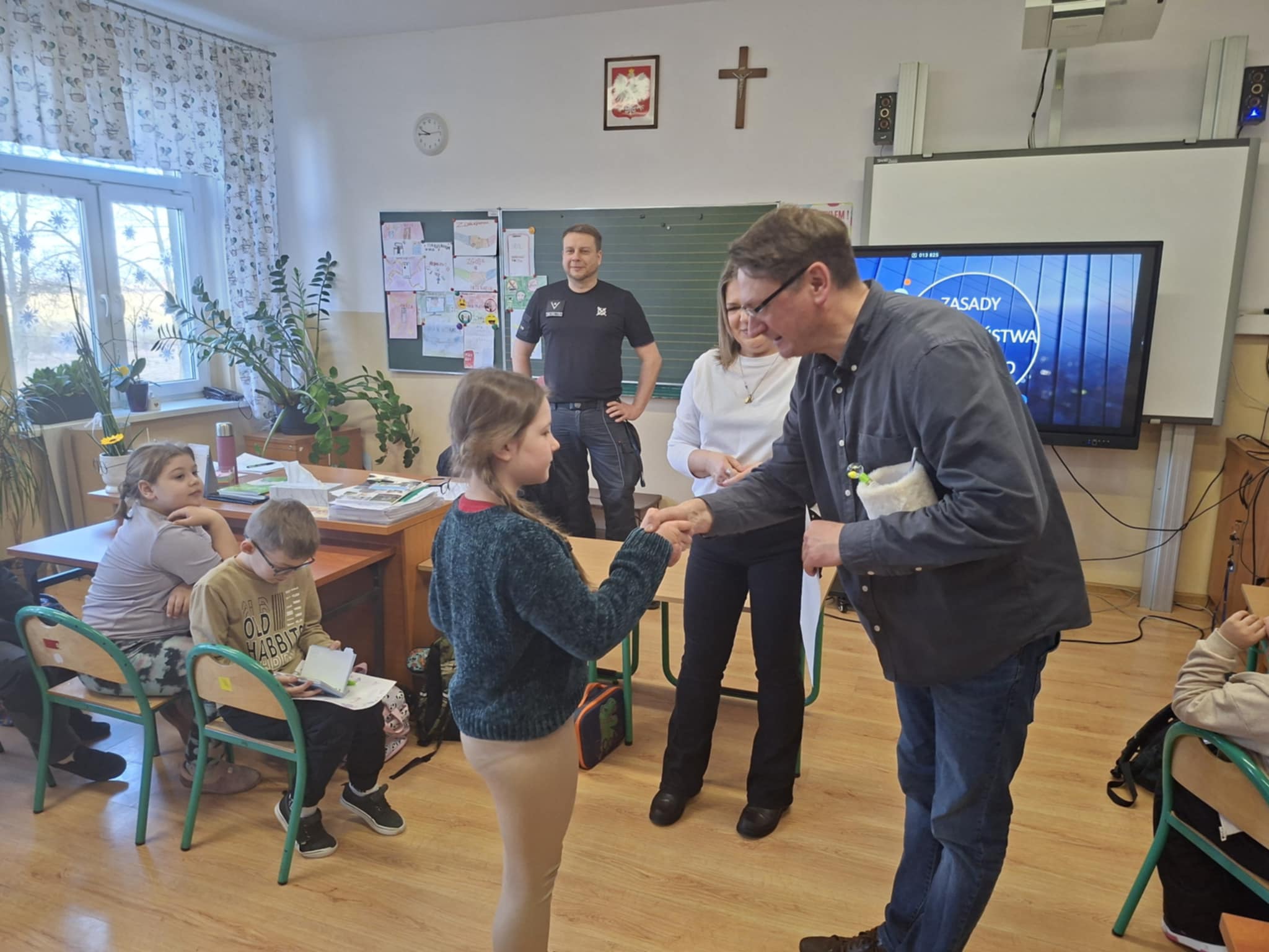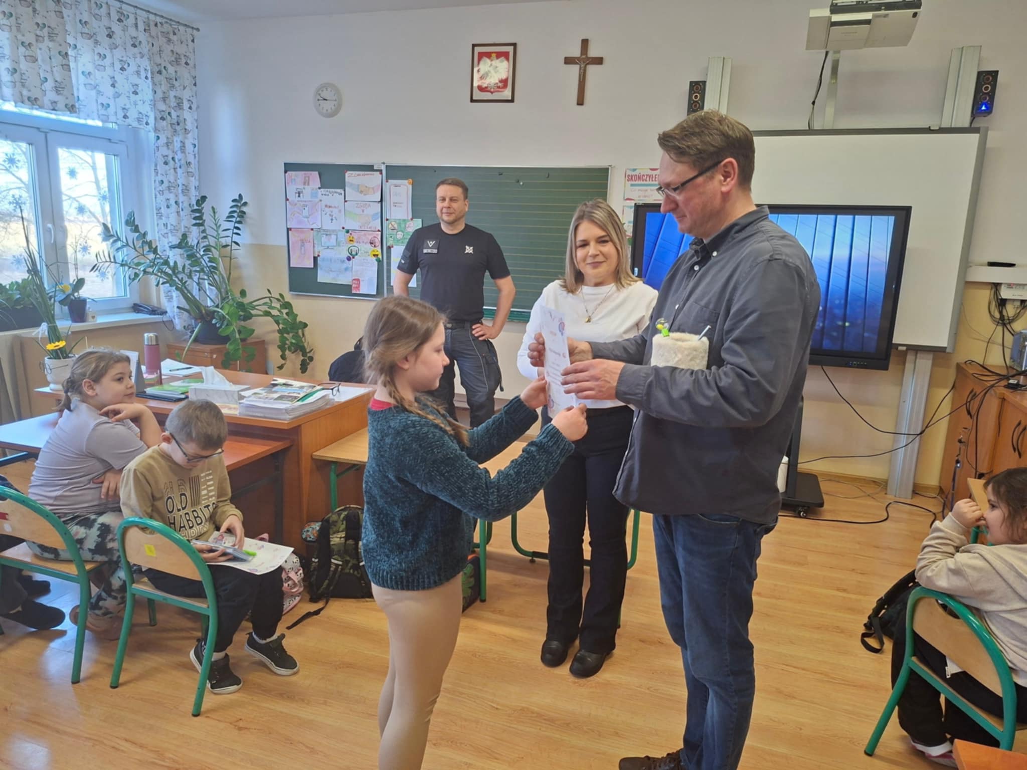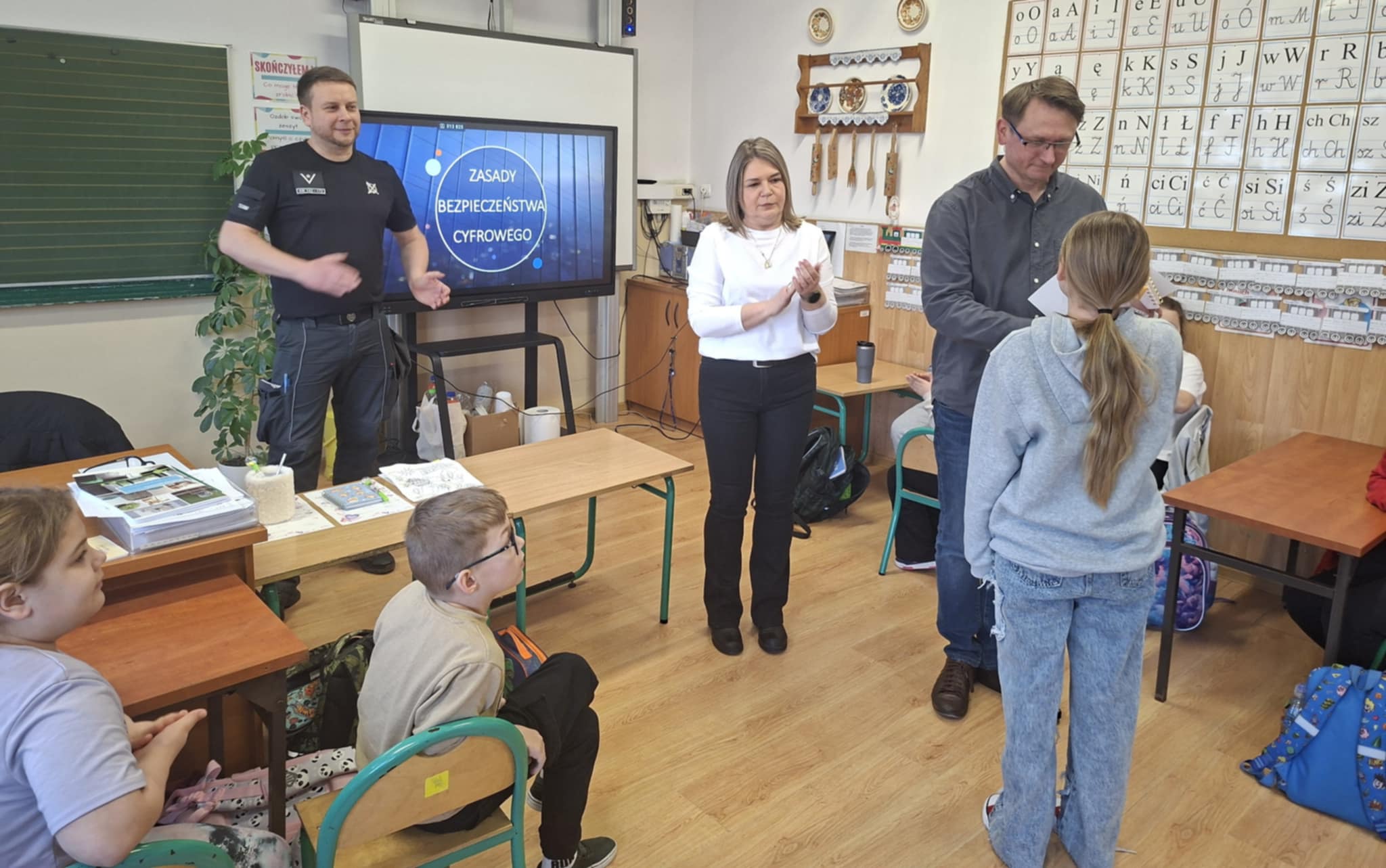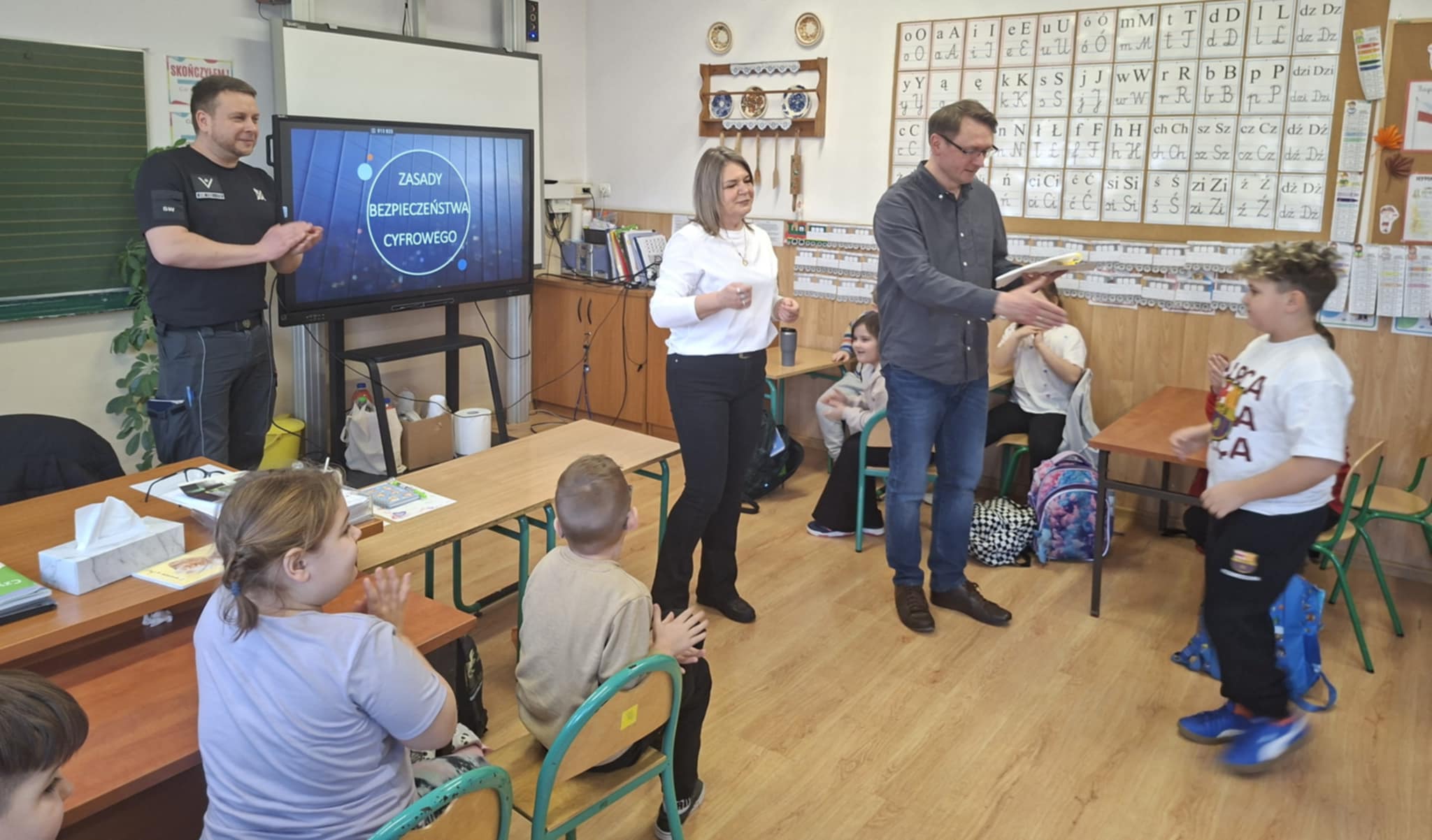 Naszym gościem był funkcjonariusz z Zakład Karnego w Inowrocławiu, który w przystępny i interesujący sposób omówił zagadnienia związane z bezpieczeństwem w sieci. Podczas prelekcji uczniowie poznali przykłady najczęstszych oszustw internetowych oraz technik socjotechnicznych stosowanych przez cyberprzestępców. Prowadzący zwrócił uwagę na konsekwencje nieodpowiedzialnych działań w Internecie oraz podkreślił, jak ważna jest ostrożność i ograniczone zaufanie wobec nieznanych osób w sieci.