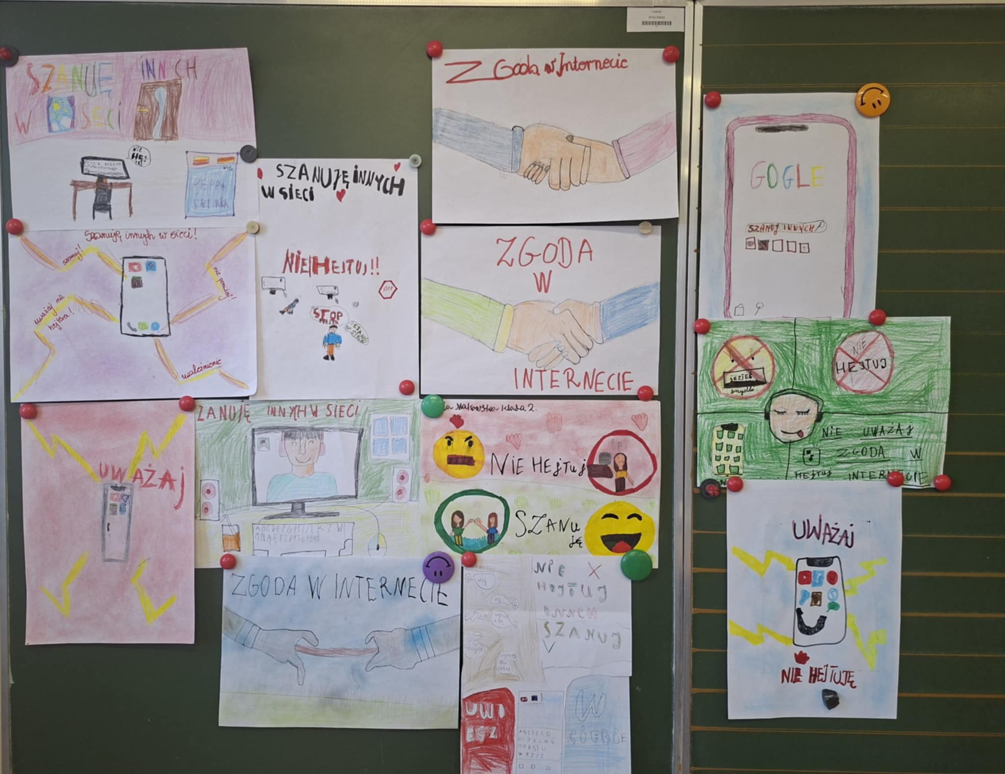 Tego dnia rozstrzygnięty został także szkolny konkurs plastyczny pt. „Szanuję innych w sieci”. Uczniowie wykazali się dużą kreatywnością i wrażliwością na temat kultury oraz wzajemnego szacunku w Internecie.
