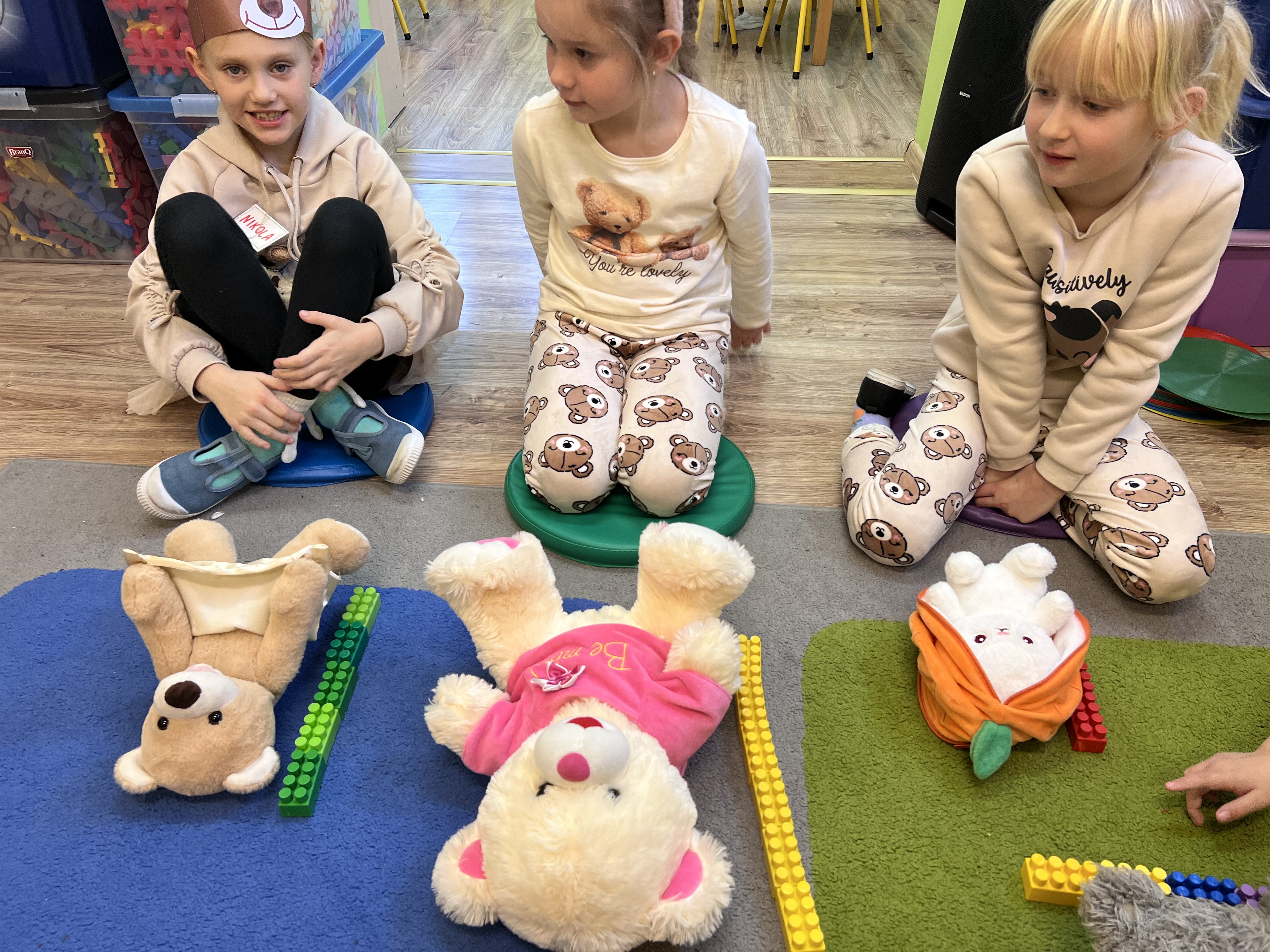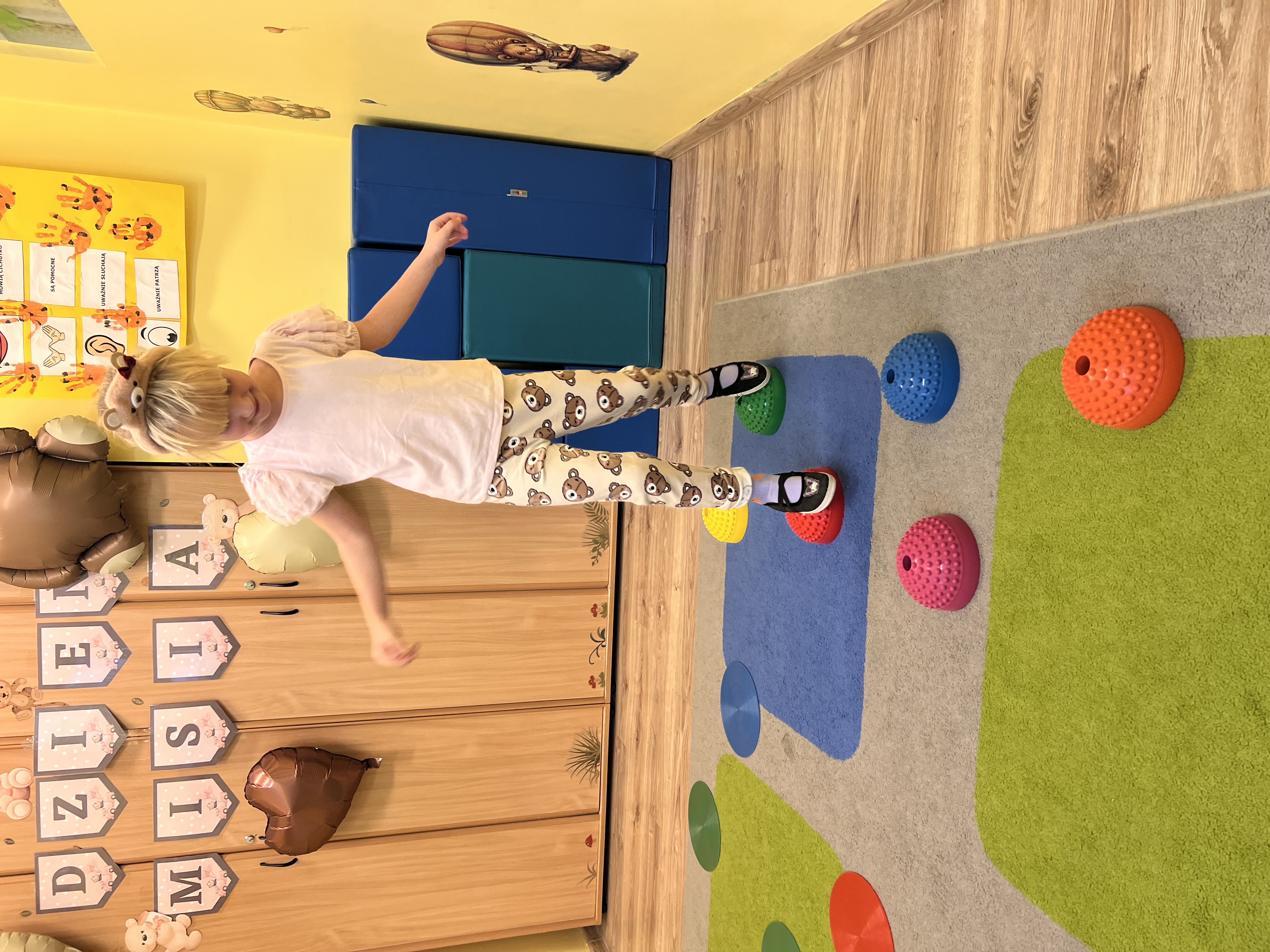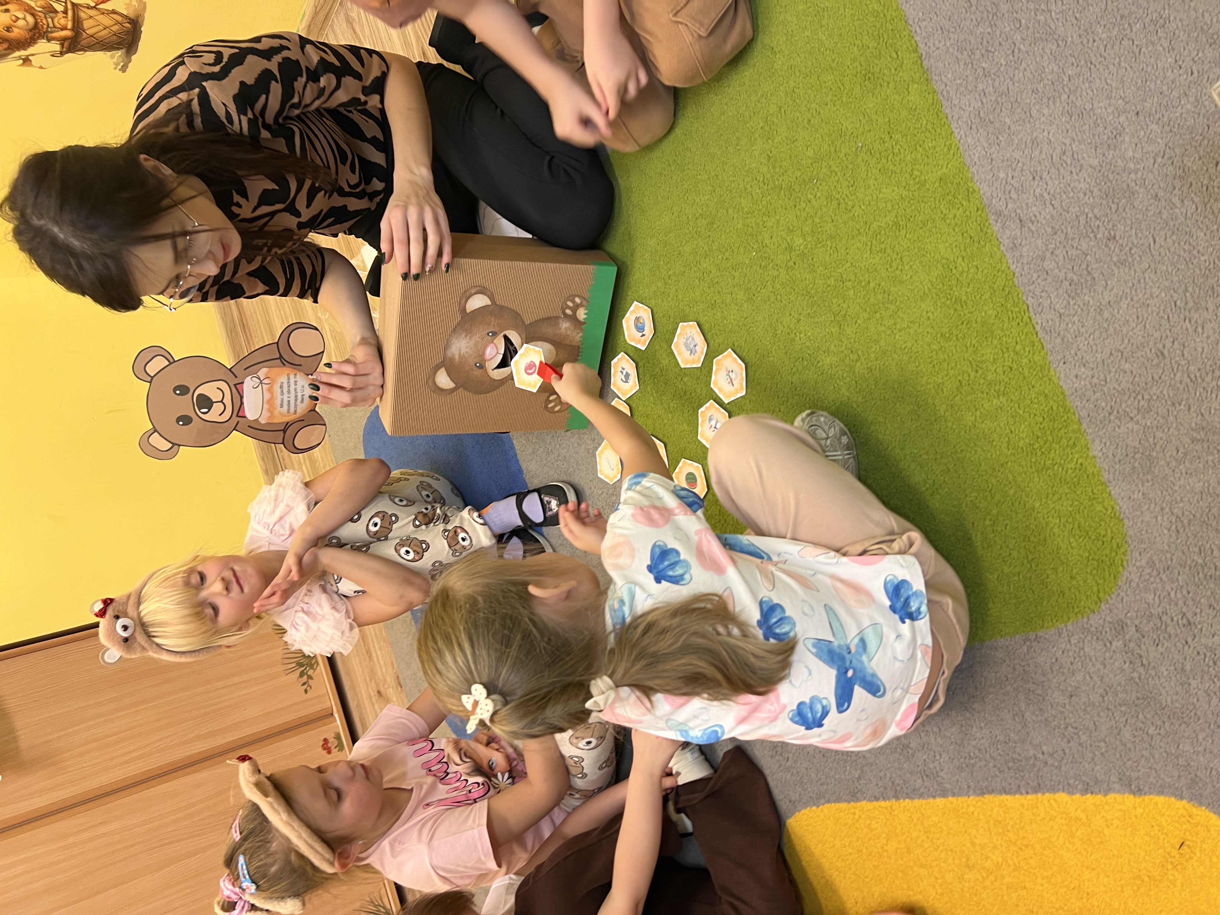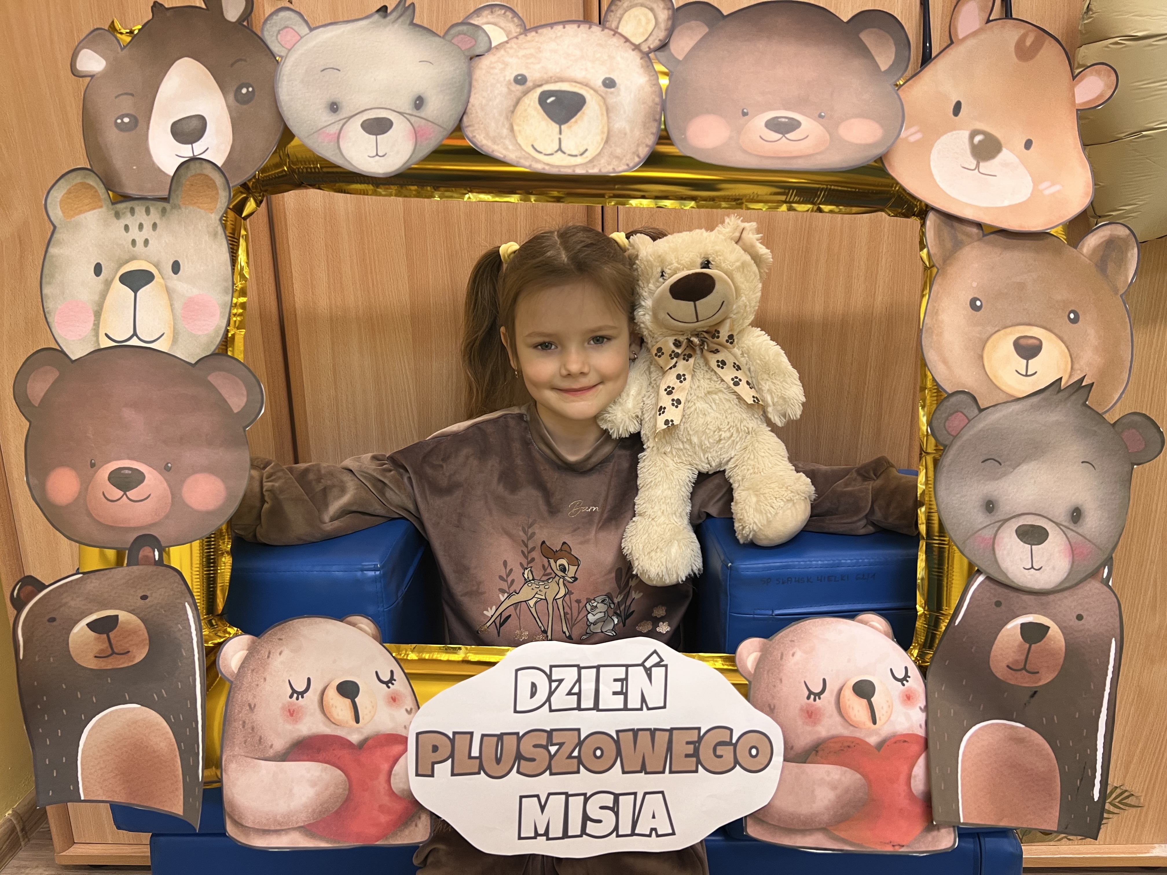 W grupie „Tygryski” świętowaliśmy Dzień Pluszowego Misia, łącząc naukę z aktywną zabawą i naturalną energią naszych przedszkolaków. Rozpoczęliśmy od radosnej powitanki ruchowej, po której dzieci poznały ciekawą historię pluszowego misia. Ruch był ważnym elementem tego wyjątkowego dnia – „Tygryski” z entuzjazmem uczestniczyły w gimnastyce z misiem oraz sprawdzały swoją sprawność na specjalnie przygotowanym torze przeszkód. Nie zabrakło wyzwań edukacyjnych: dzieci samodzielnie mierzyły misie używając klocków jako nietypowej jednostki miary.Następnie doskonaliły liczenie, precyzyjnie dopasowując plastry miodu do danego misia. Wiele radości sprawiła również zabawa w „Szukanie miodku ”, dzięki której przedszkolaki rozwijały słuch fonemowy. Wyjątkową atrakcją dnia była także fotobudka, z której dzieci mogły korzystać w trakcie zabaw, tworząc pamiątkowe, radosne zdjęcia. Dzień upłynął w atmosferze uśmiechu, ruchu i kreatywnej nauki, pozostawiając wiele ciepłych wspomnień.