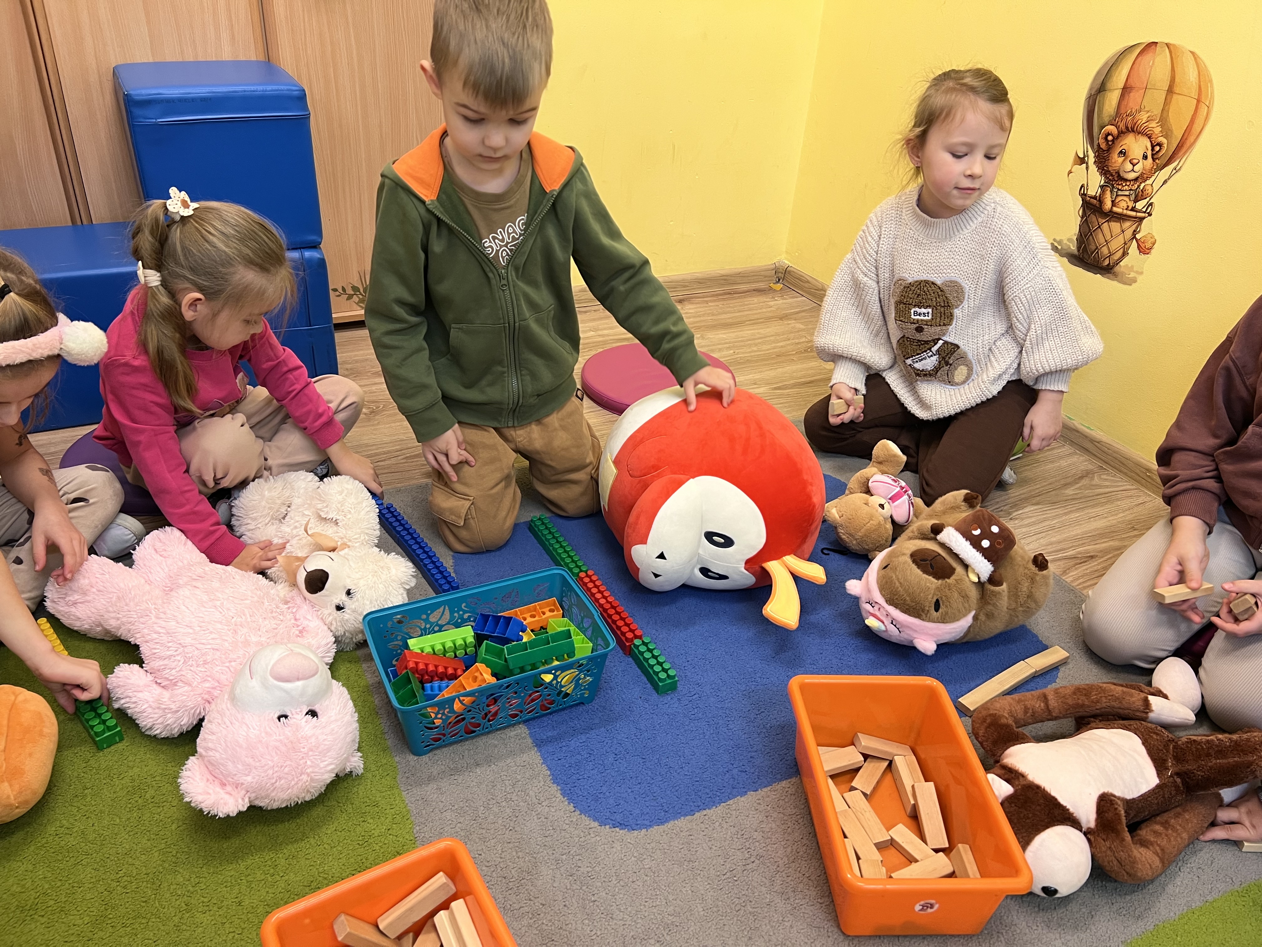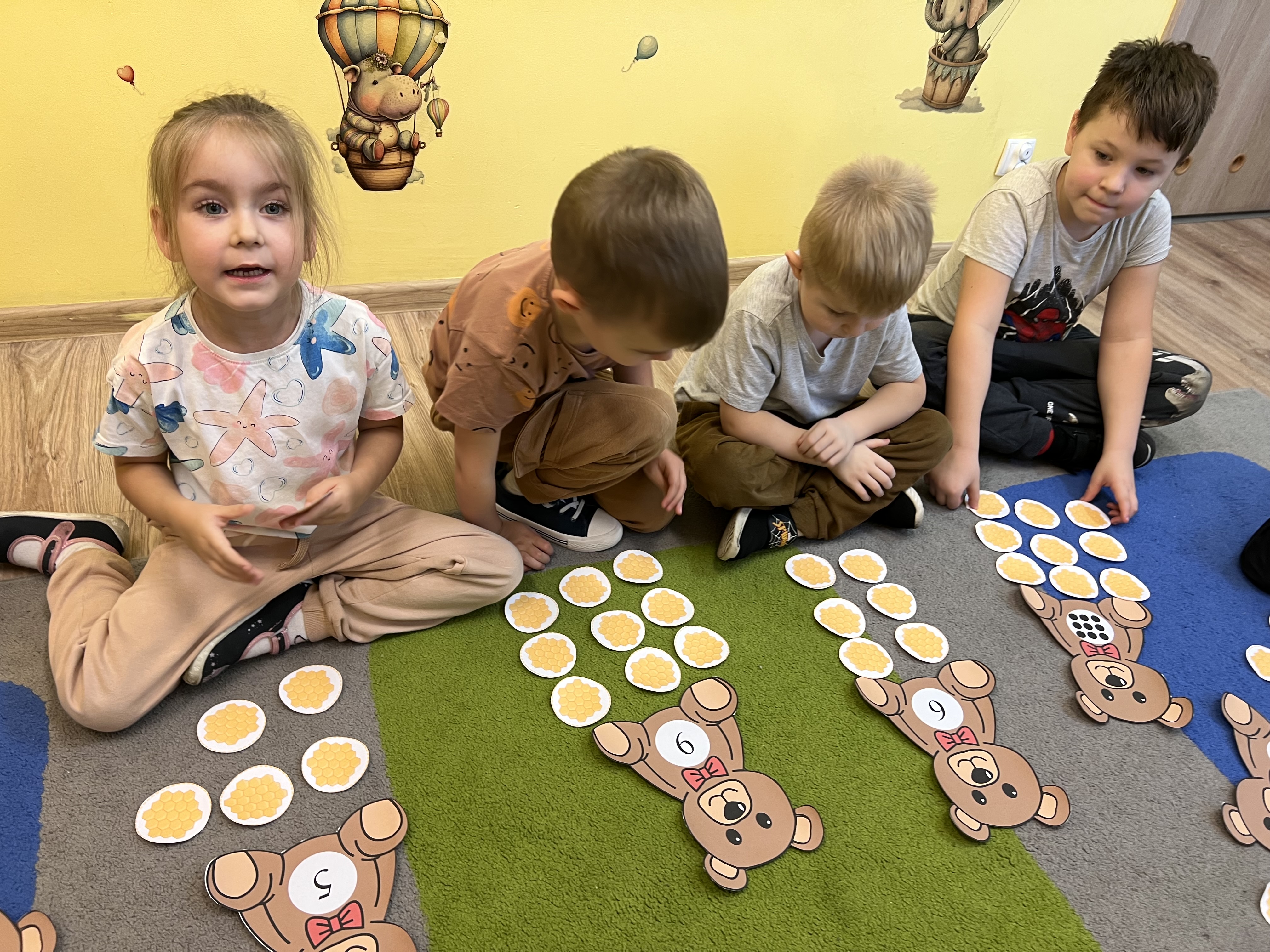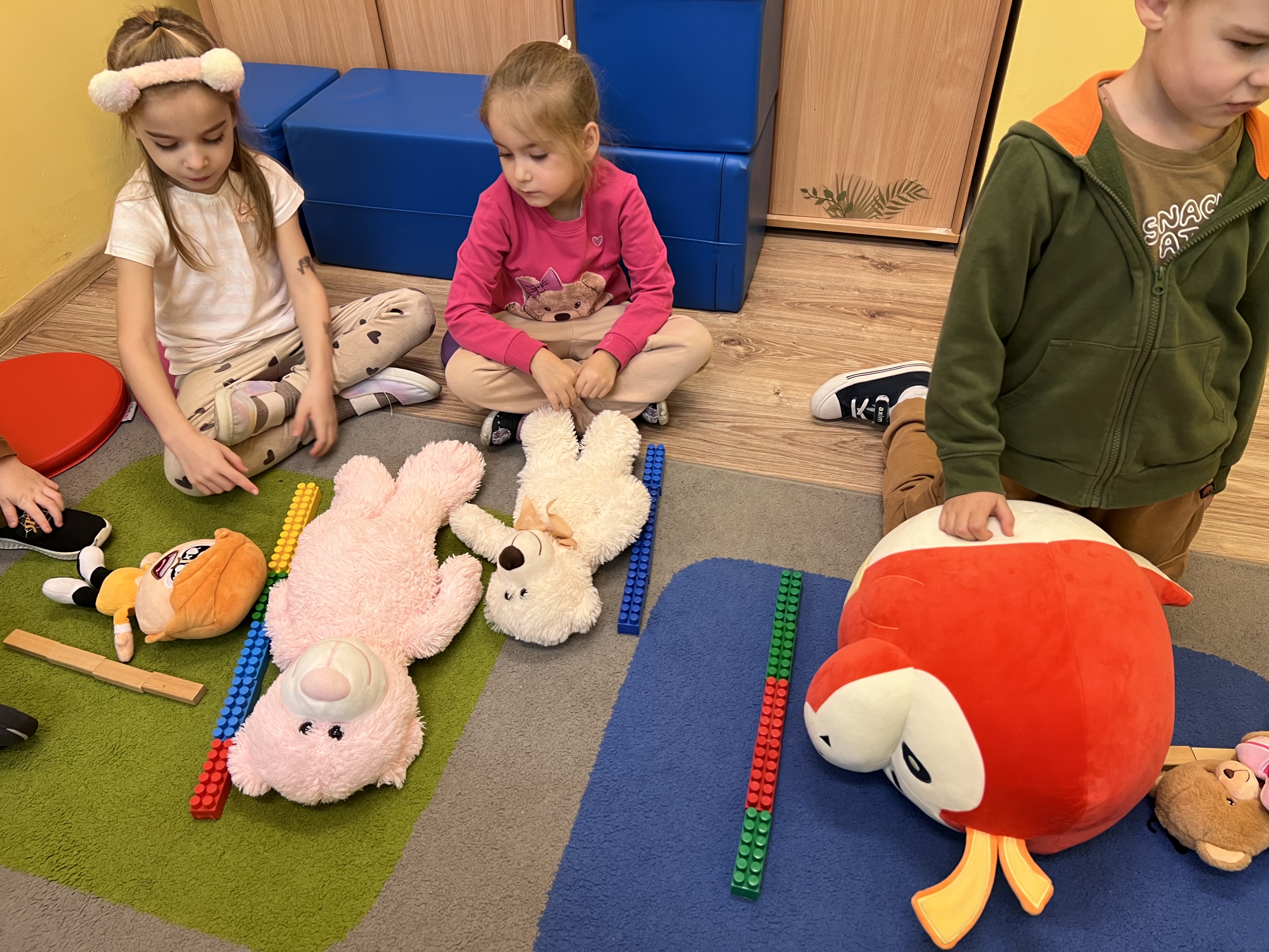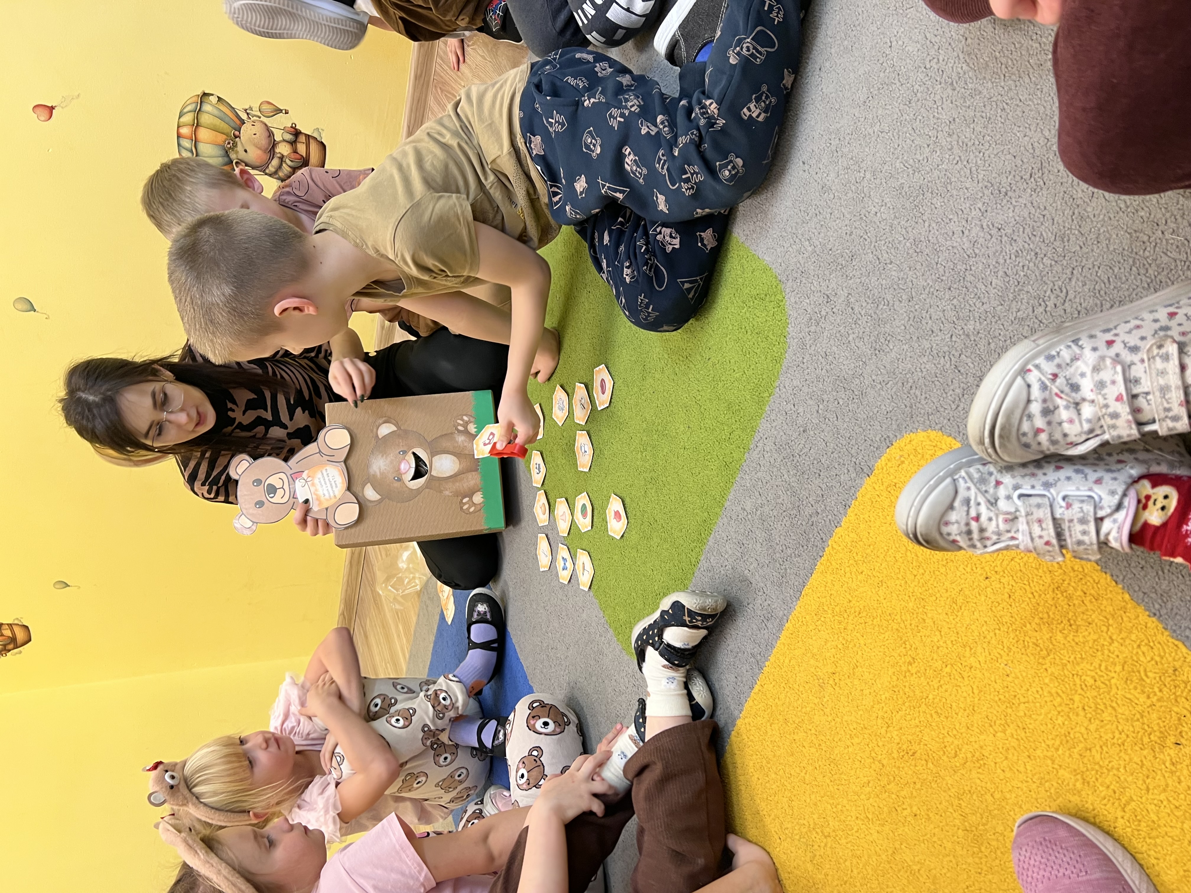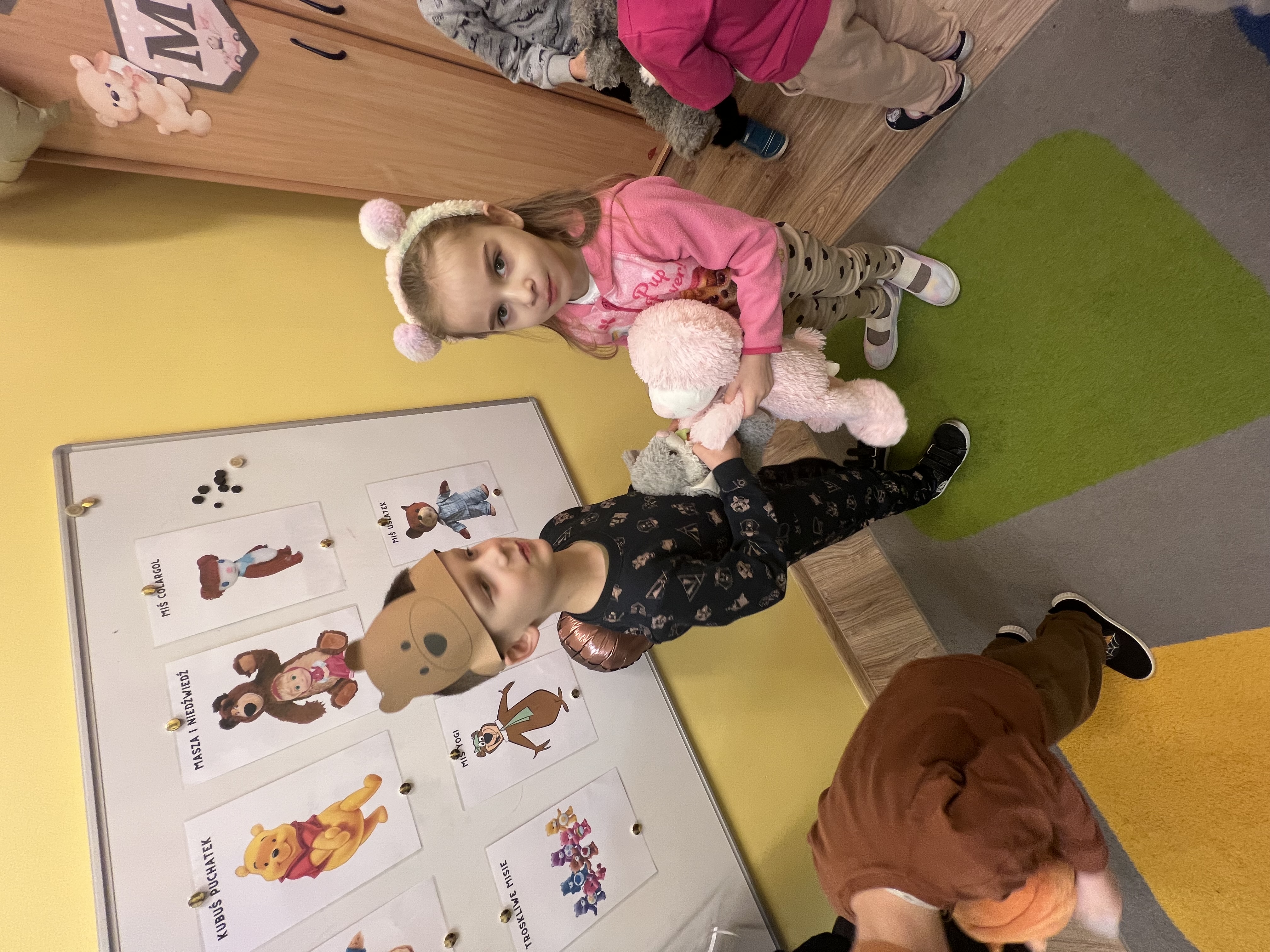 W grupie „Tygryski” świętowaliśmy Dzień Pluszowego Misia, łącząc naukę z aktywną zabawą i naturalną energią naszych przedszkolaków. Rozpoczęliśmy od radosnej powitanki ruchowej, po której dzieci poznały ciekawą historię pluszowego misia. Ruch był ważnym elementem tego wyjątkowego dnia – „Tygryski” z entuzjazmem uczestniczyły w gimnastyce z misiem oraz sprawdzały swoją sprawność na specjalnie przygotowanym torze przeszkód. Nie zabrakło wyzwań edukacyjnych: dzieci samodzielnie mierzyły misie używając klocków jako nietypowej jednostki miary.Następnie doskonaliły liczenie, precyzyjnie dopasowując plastry miodu do danego misia. Wiele radości sprawiła również zabawa w „Szukanie miodku ”, dzięki której przedszkolaki rozwijały słuch fonemowy. Wyjątkową atrakcją dnia była także fotobudka, z której dzieci mogły korzystać w trakcie zabaw, tworząc pamiątkowe, radosne zdjęcia. Dzień upłynął w atmosferze uśmiechu, ruchu i kreatywnej nauki, pozostawiając wiele ciepłych wspomnień.