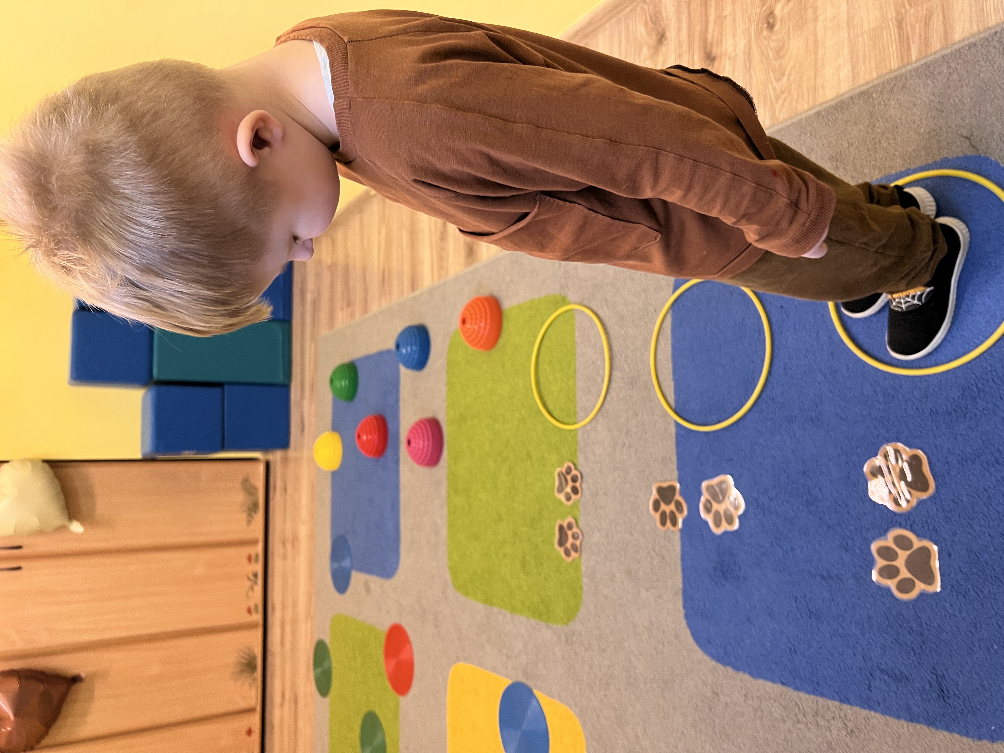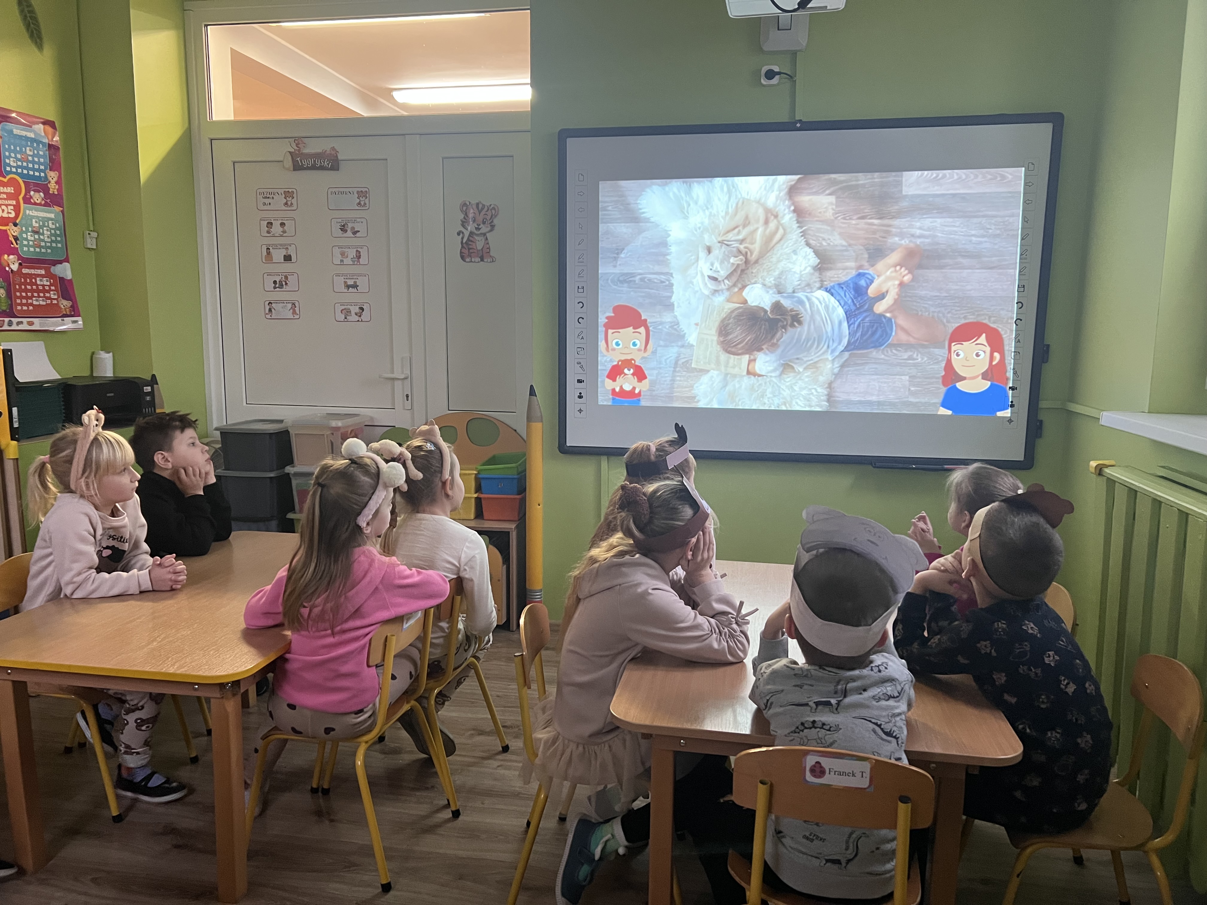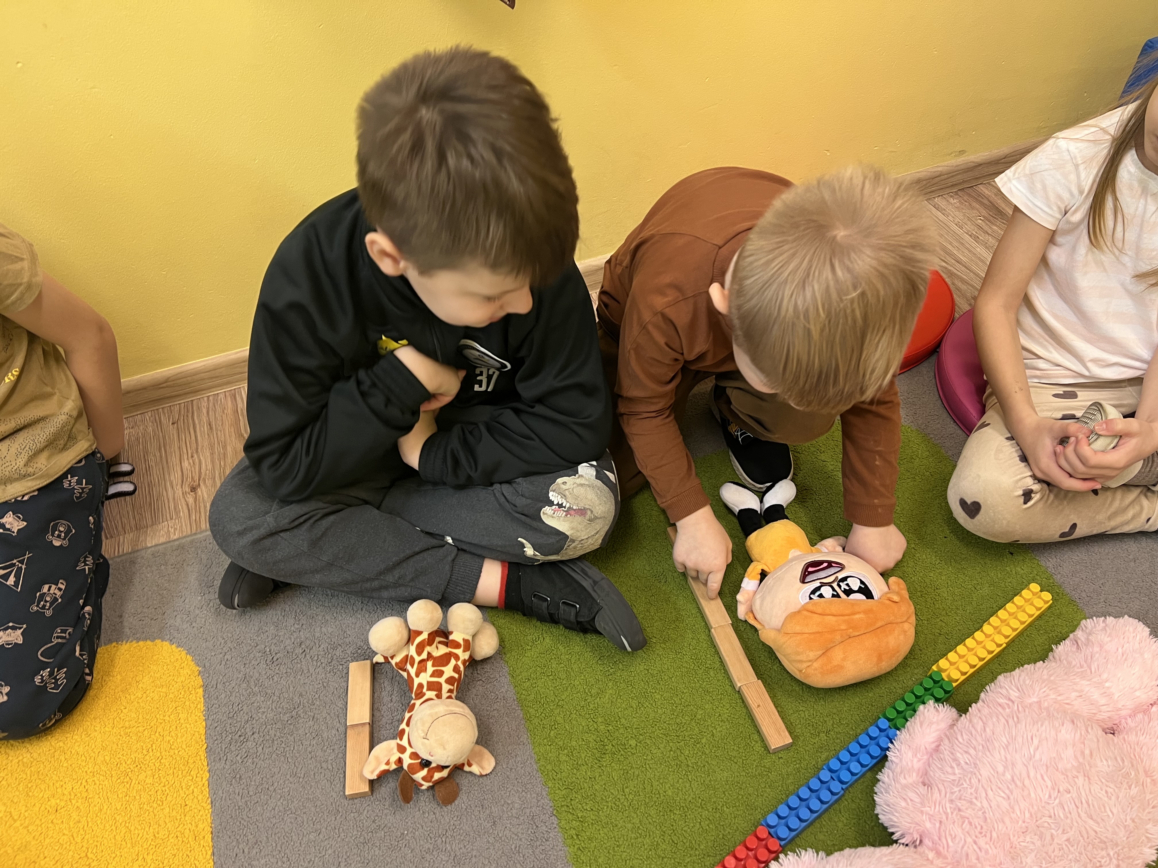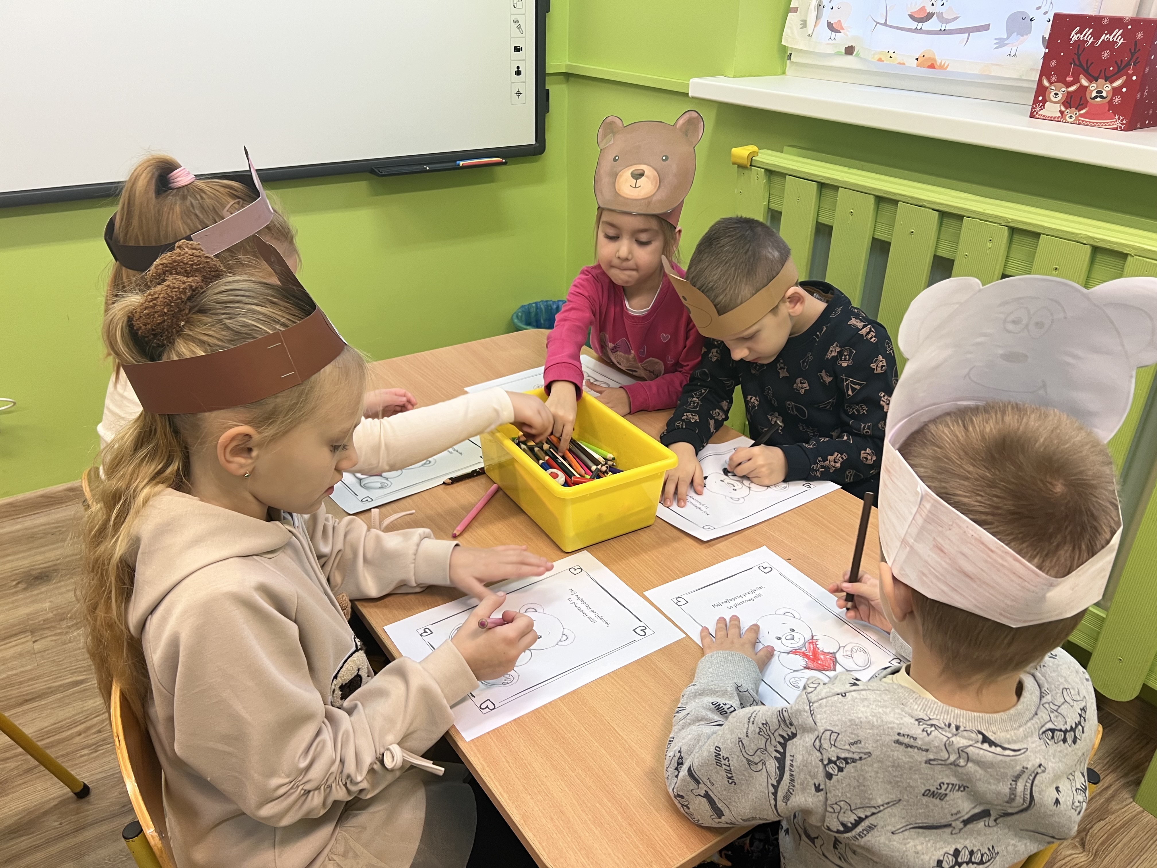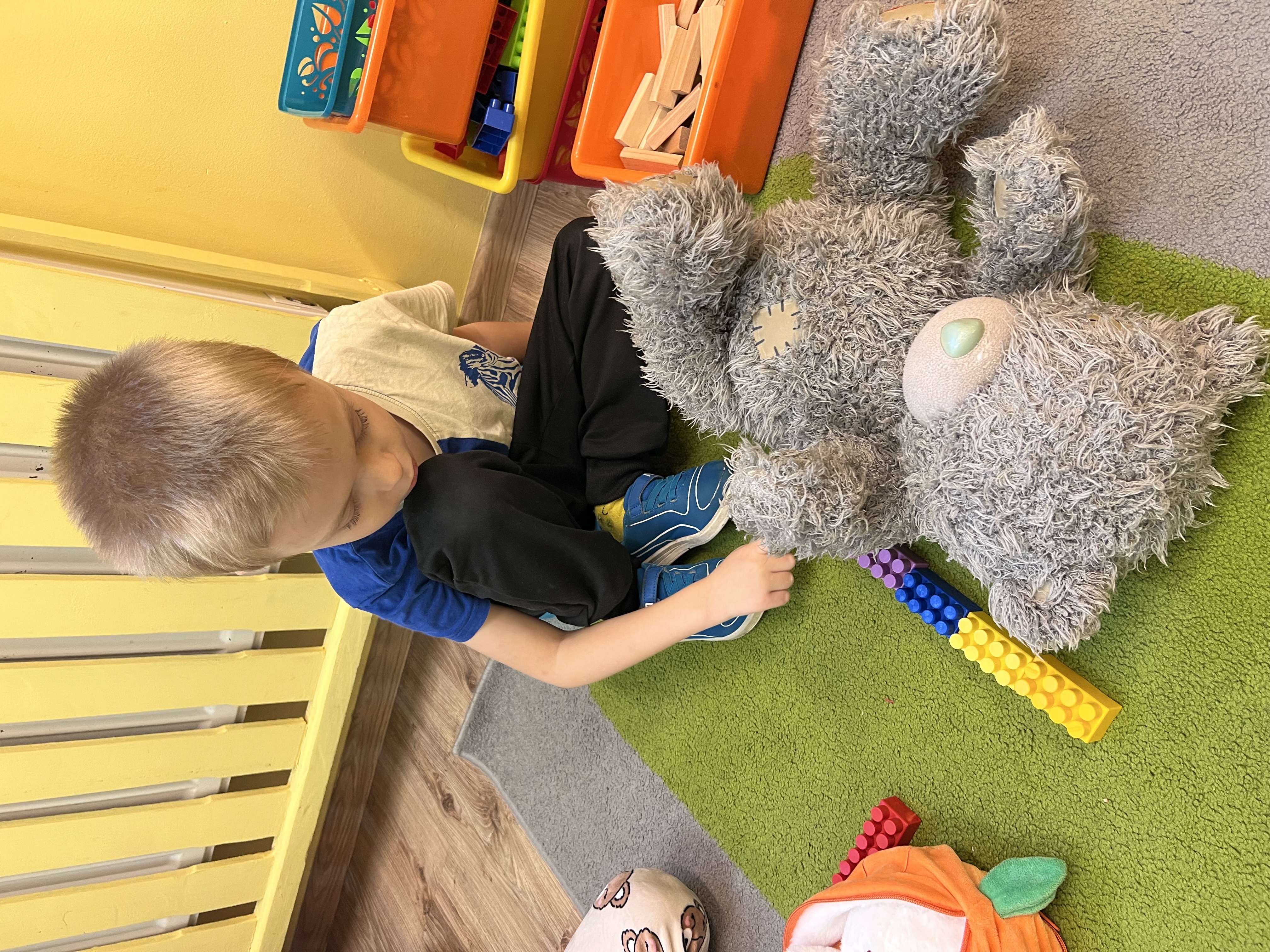W grupie „Tygryski” świętowaliśmy Dzień Pluszowego Misia, łącząc naukę z aktywną zabawą i naturalną energią naszych przedszkolaków. Rozpoczęliśmy od radosnej powitanki ruchowej, po której dzieci poznały ciekawą historię pluszowego misia. Ruch był ważnym elementem tego wyjątkowego dnia – „Tygryski” z entuzjazmem uczestniczyły w gimnastyce z misiem oraz sprawdzały swoją sprawność na specjalnie przygotowanym torze przeszkód. Nie zabrakło wyzwań edukacyjnych: dzieci samodzielnie mierzyły misie używając klocków jako nietypowej jednostki miary.Następnie doskonaliły liczenie, precyzyjnie dopasowując plastry miodu do danego misia. Wiele radości sprawiła również zabawa w „Szukanie miodku ”, dzięki której przedszkolaki rozwijały słuch fonemowy. Wyjątkową atrakcją dnia była także fotobudka, z której dzieci mogły korzystać w trakcie zabaw, tworząc pamiątkowe, radosne zdjęcia. Dzień upłynął w atmosferze uśmiechu, ruchu i kreatywnej nauki, pozostawiając wiele ciepłych wspomnień.