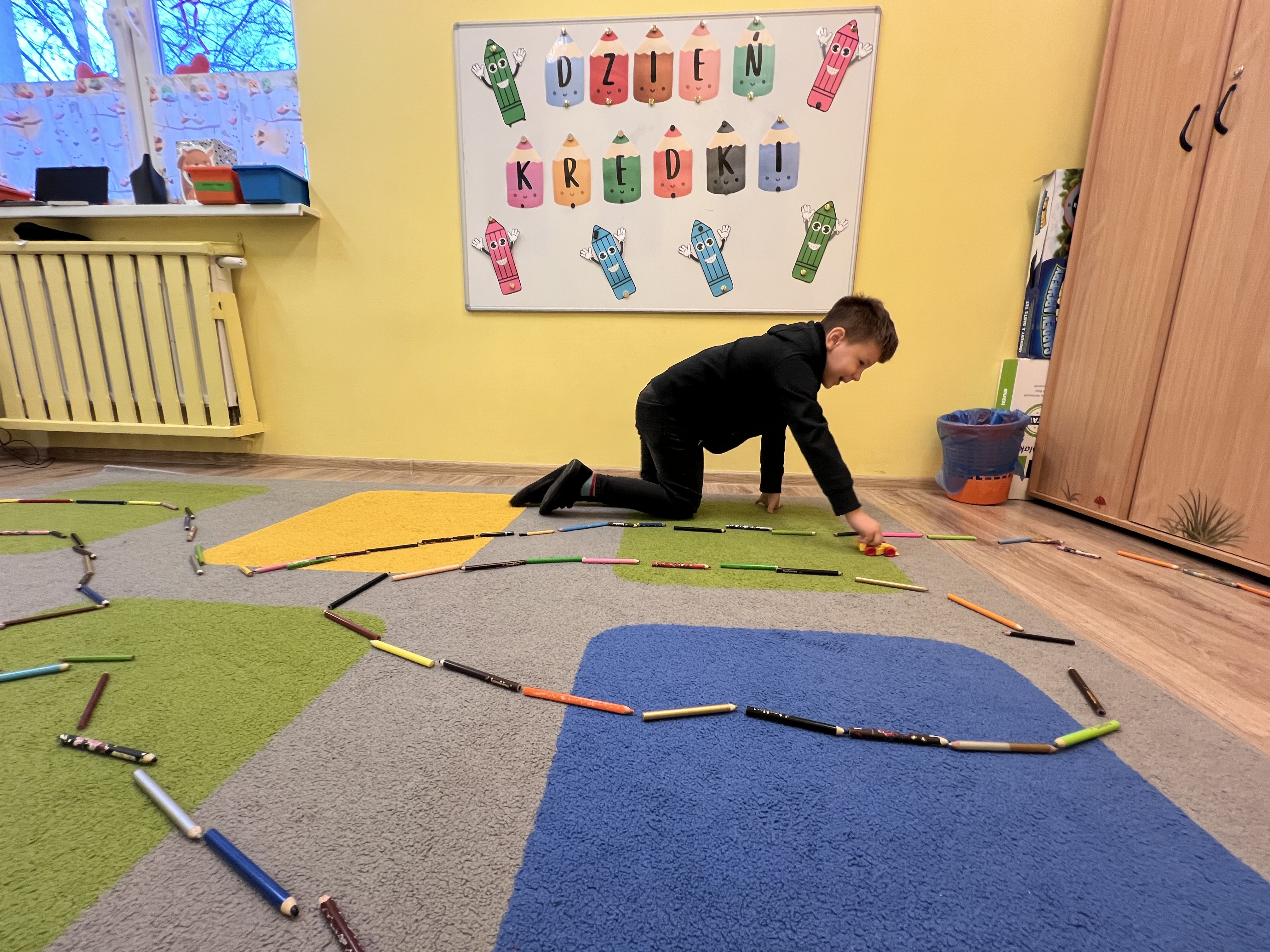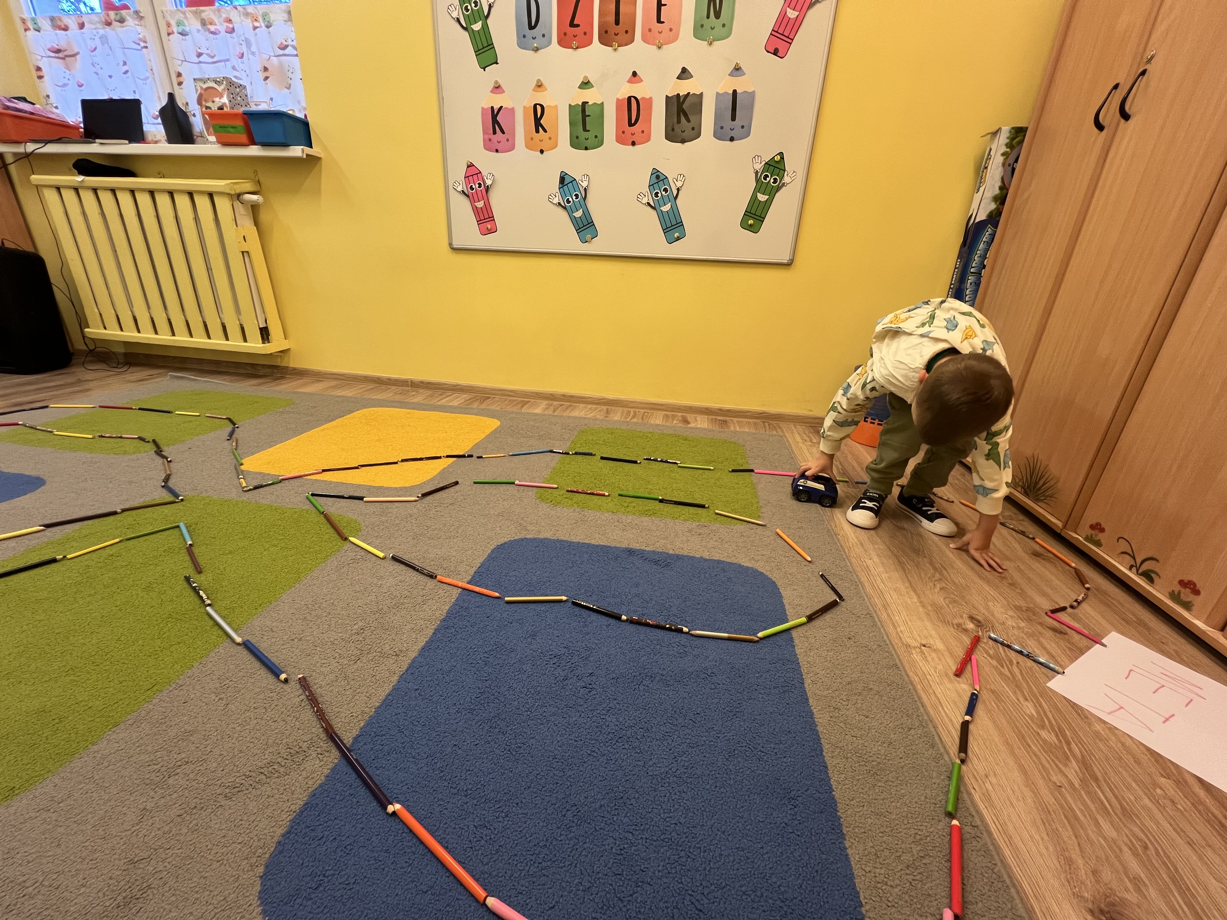 NaszÄ… przygodÄ™ rozpoczÄ™liÅ›my od zbudowania imponujÄ…cego toru wyÅ›cigowego z kredek, po którym natychmiast urzÄ…dziliÅ›my peÅ‚ne emocji wyÅ›cigi. To zadanie wymagaÅ‚o od dzieci precyzji, koncentracji i zrÄ™cznoÅ›ci!