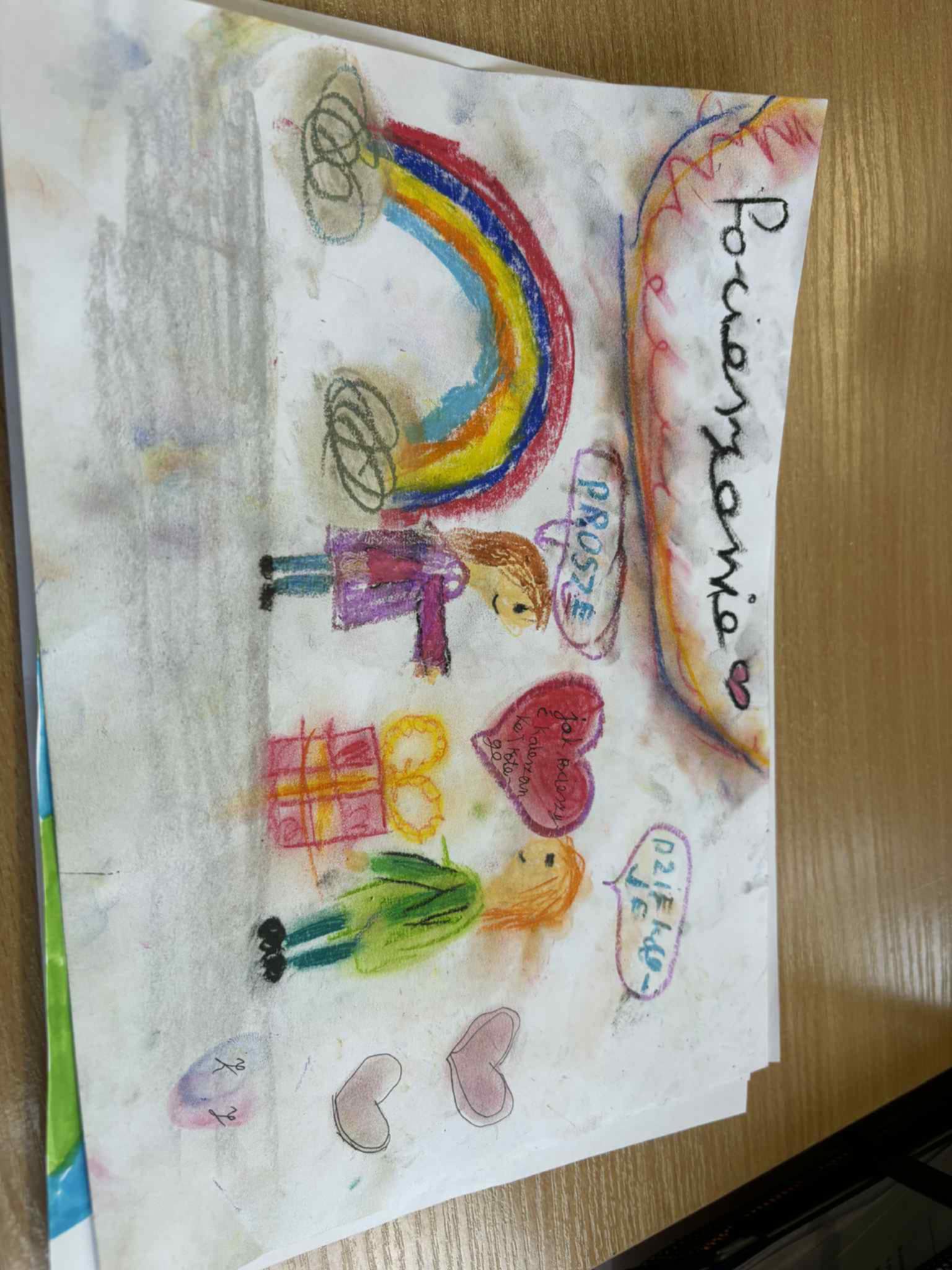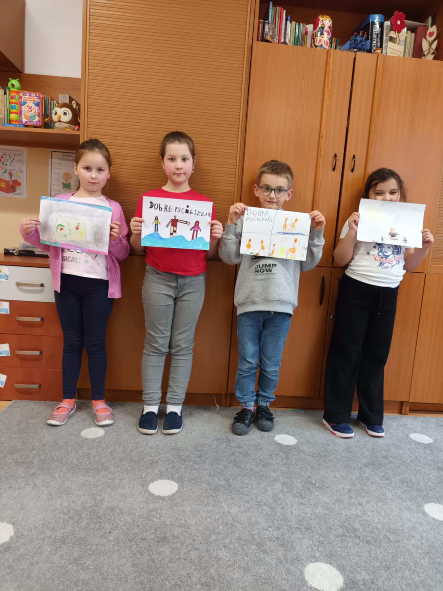 Uczniowie klas I–III podczas zajęć wykonali prace plastyczne pod tytułem „Dobre pocieszanie”. Celem pracy plastycznej było pobudzanie uczniów do autorefleksji nad doświadczeniami emocjonalnymi. Zajęcia miały na celu rozwijanie empatii i umiejętności wspierania innych w trudnych chwilach. Na korytarzu szkoły widniała tematyczna gazetka szkolna.