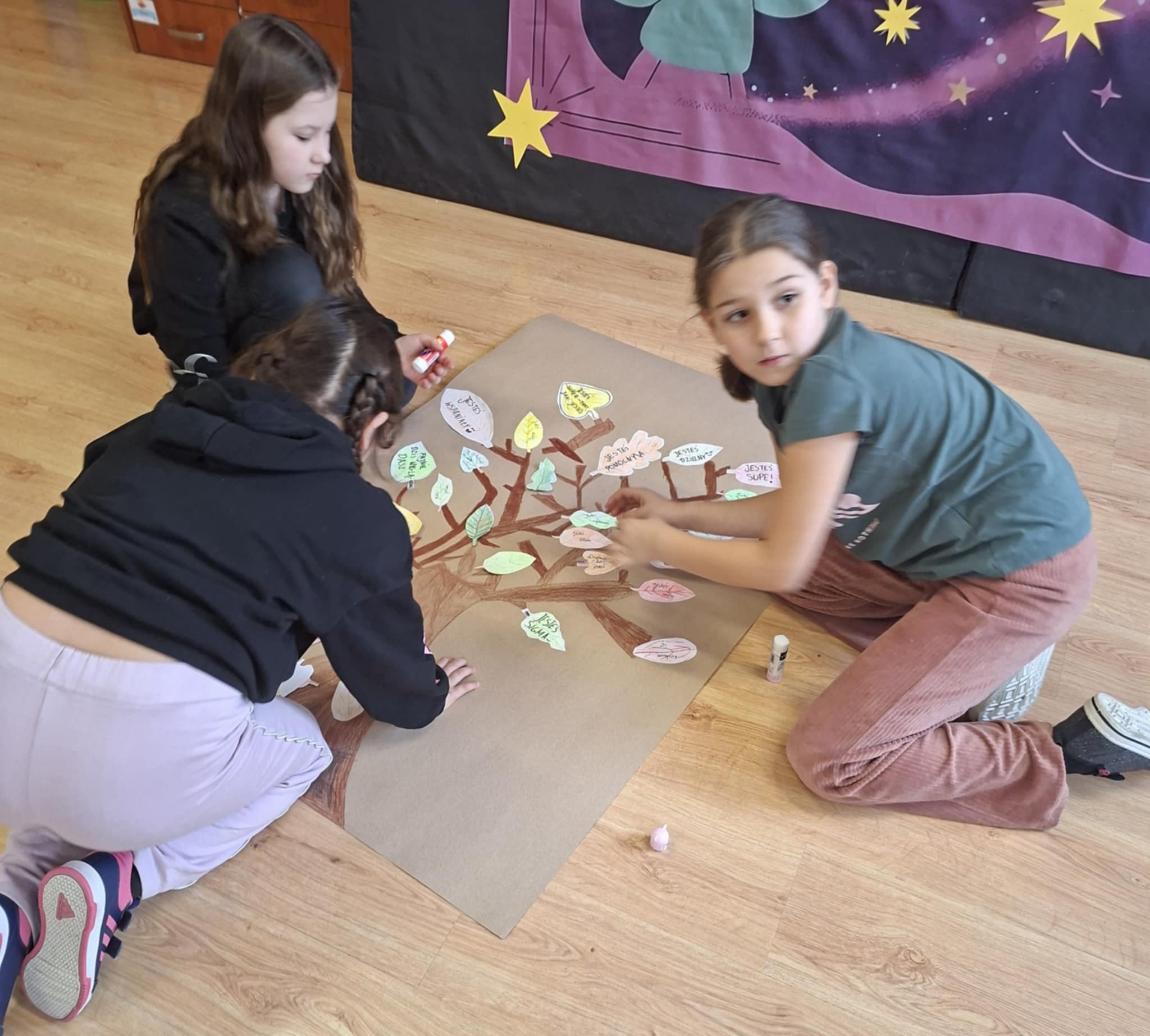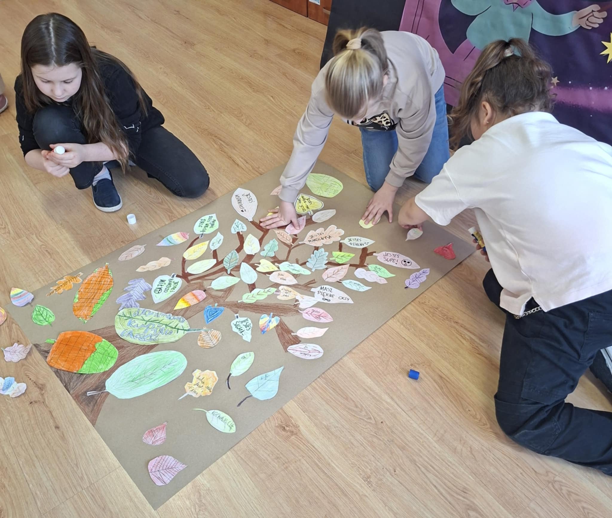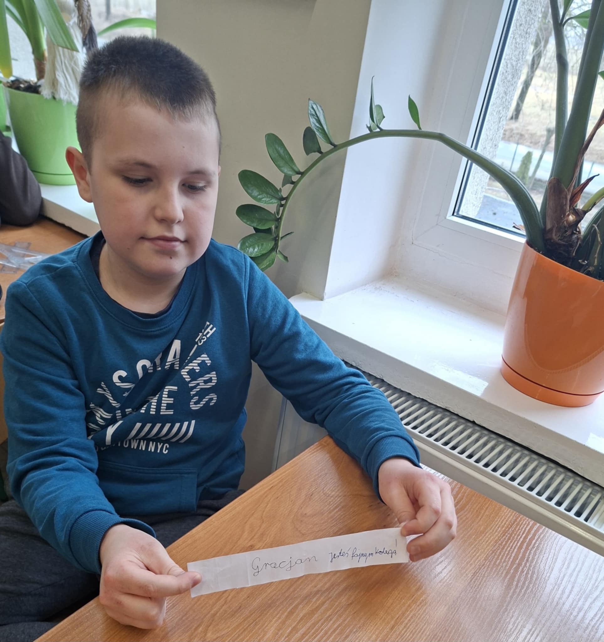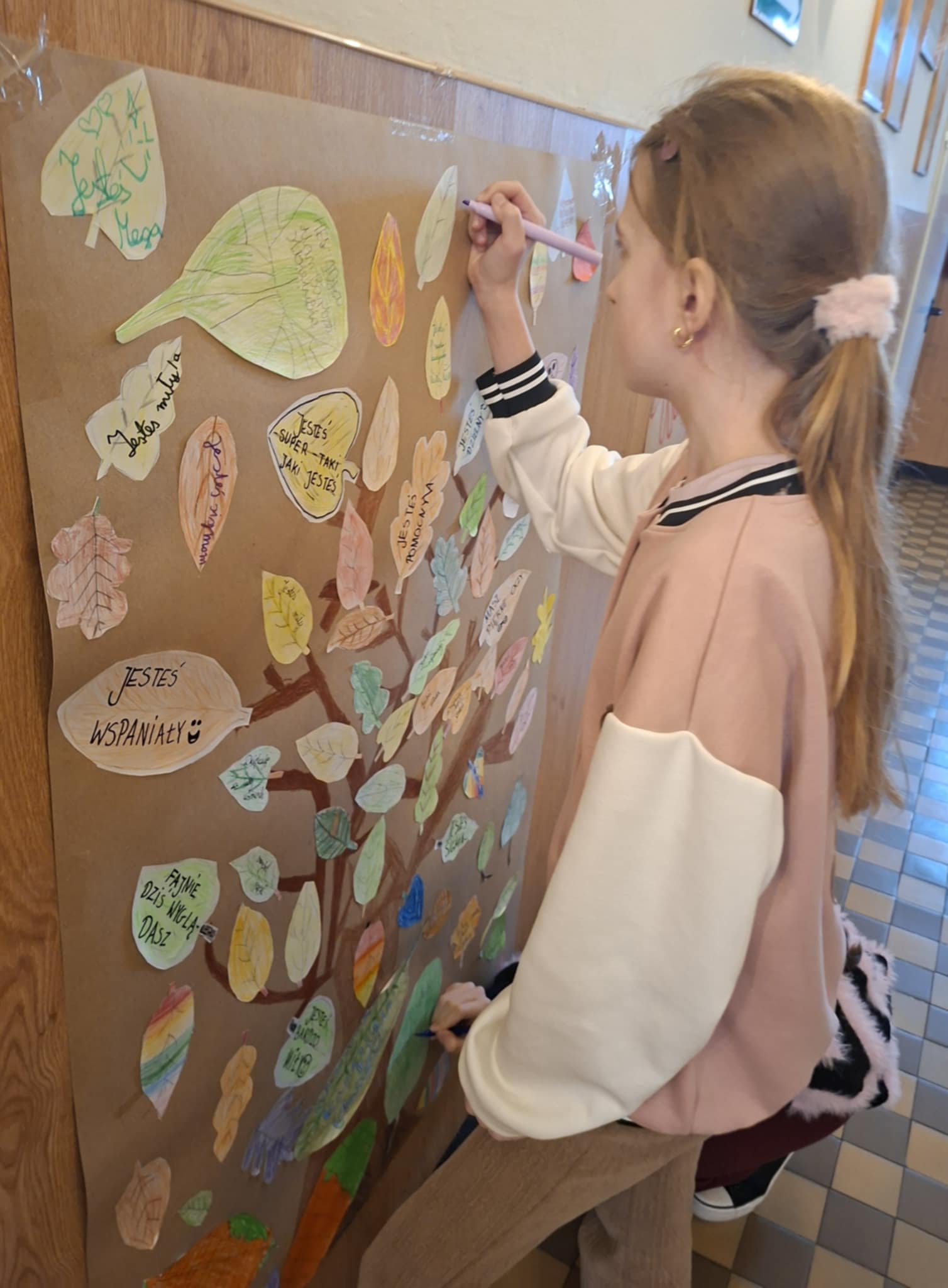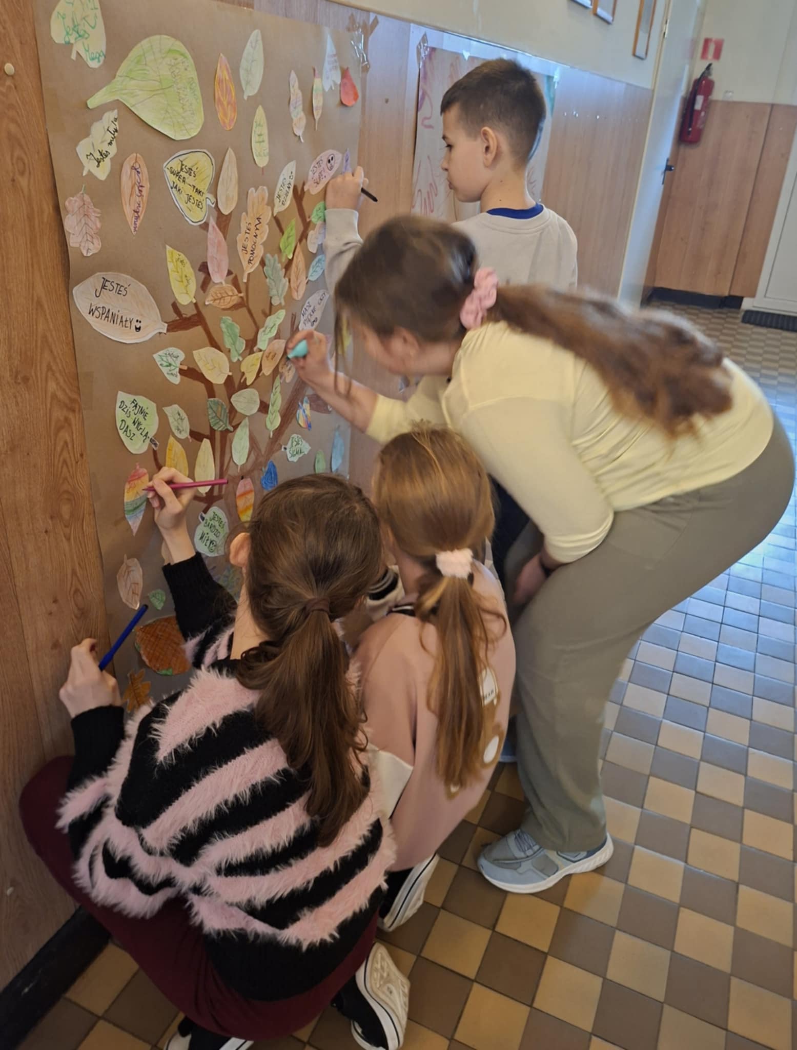 Nasza szkoła włączyła się w akcję Kujawsko-Pomorskiego Kuratora Oświaty „Ku wartościom”, podejmując działania edukacyjne i profilaktyczne. Uczniowie klas I-III wspólnie stworzyli „Drzewo Życzliwości”, na którym umieścili listki z miłymi hasłami. Uczniowie klasy VI wykonali plakat pt. „Proszenie o pomoc to siła”, a uczniowie klasy II wzięli udział w spacerze pod hasłem „Ruszamy po lepszy nastrój”. Tego dnia ogłosiliśmy w szkole „Dzień dobrych słów”, podczas którego uczniowie losowali karteczki z imionami kolegów i koleżanek, a następnie pisali lub rysowali dla nich coś miłego.