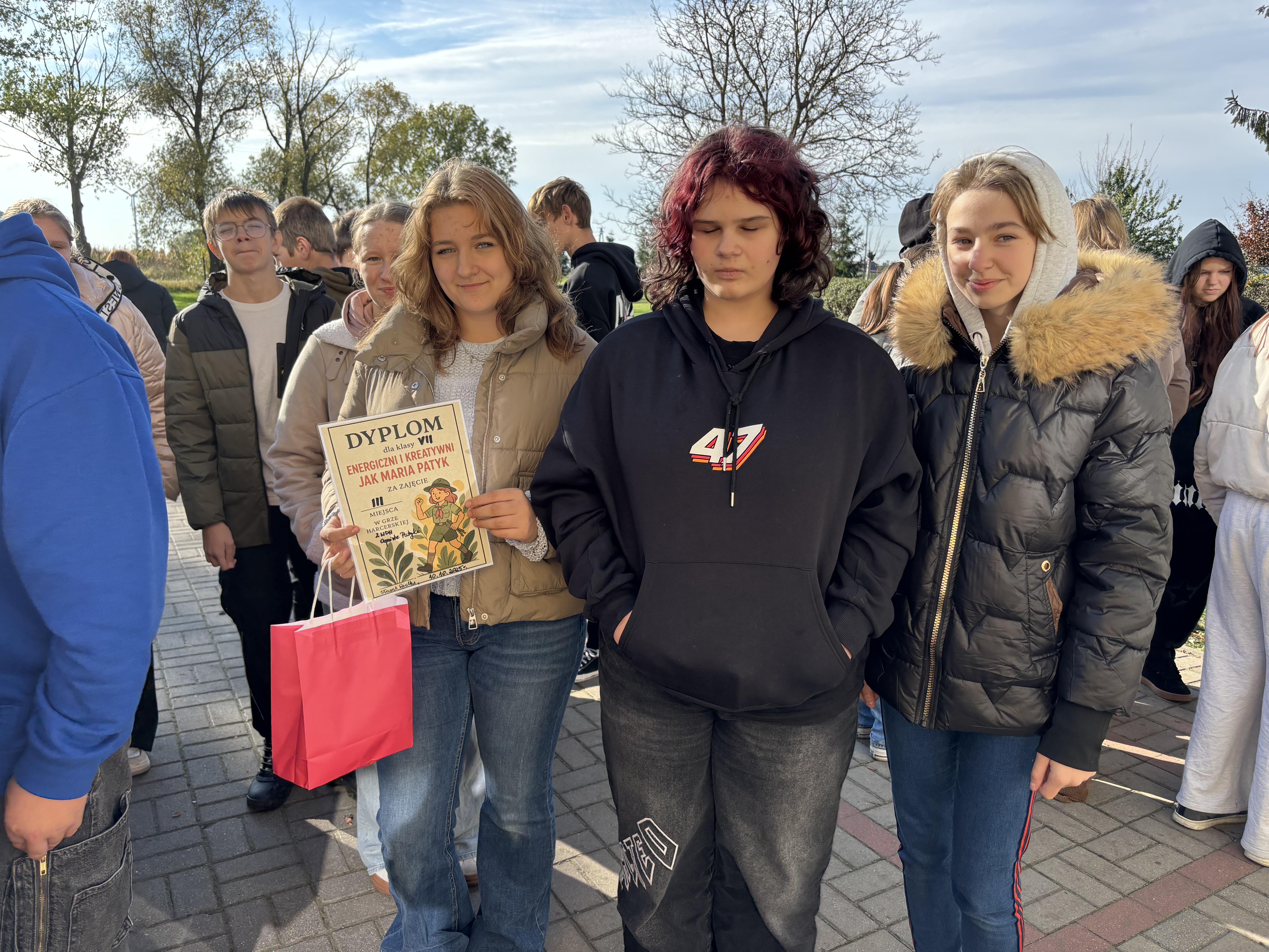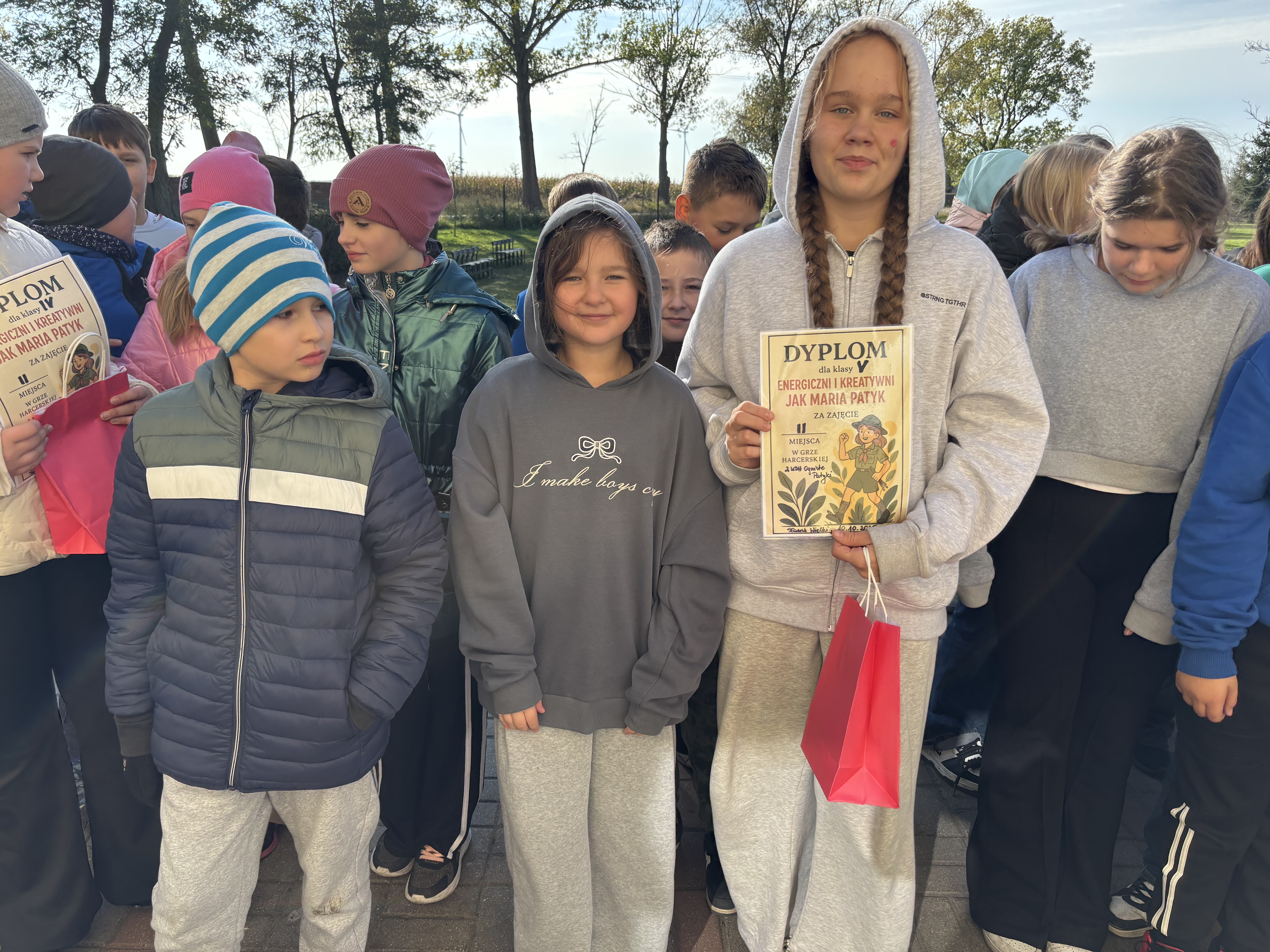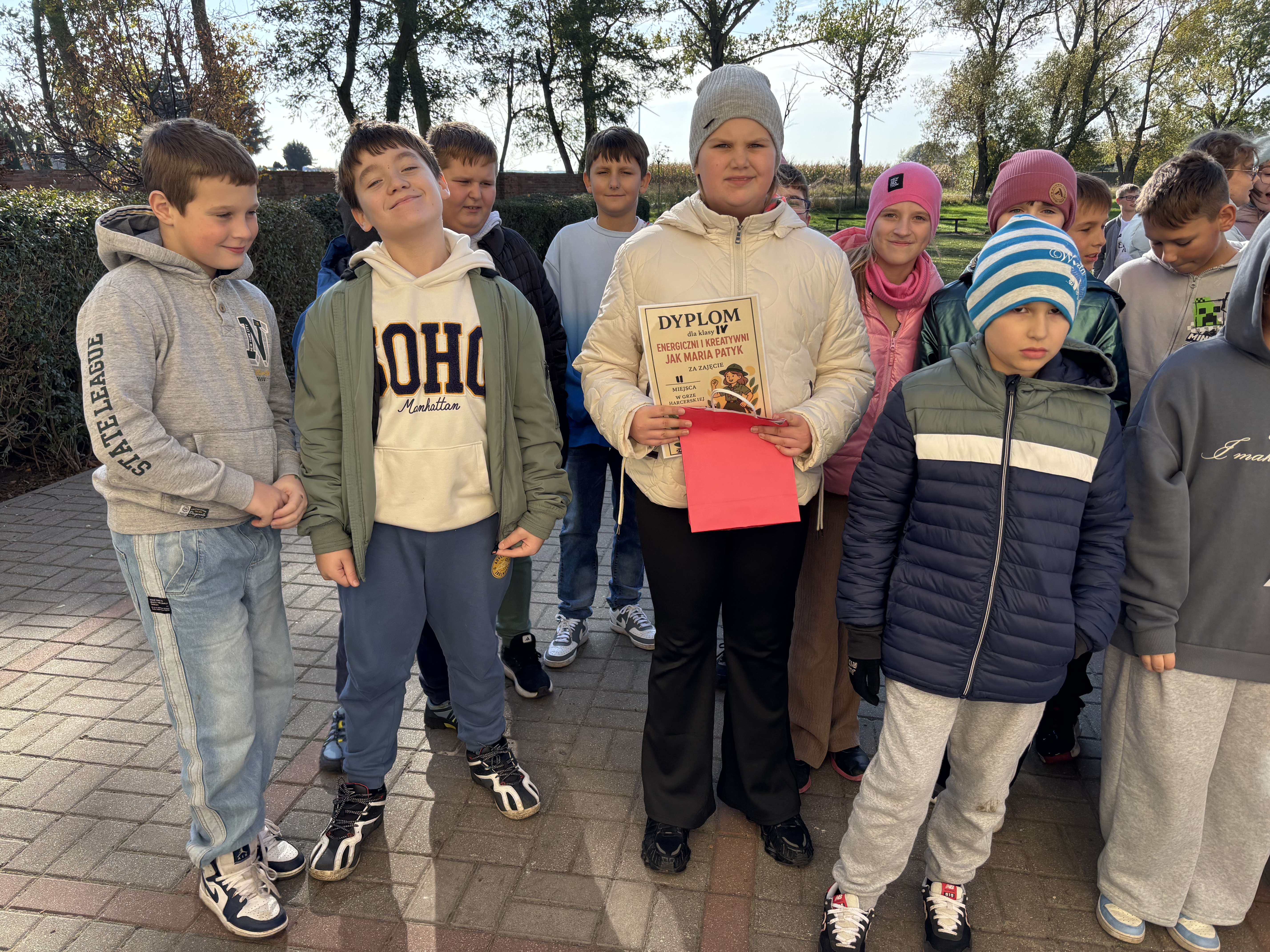 We wtorek 21 października 2025 r. poznaliśmy wyniki zmagań uczniów kl. 4-8 w grze zorganizowanej przez 2 WDH Ogniste Patyki z okazji obchodów Dnia Patrona. Wszyscy uczestnicy spisali się znakomicie, a różnice w końcowej punktacji były minimalne. Uczniowie kl. 7 i 8 zajęli ex aequo III miejsce, uczniowie kl. 4 i 5 ex aequo II miejsce. Zwyciężyła reprezentacja kl. 6. Gratulujemy! Słodkości dla każdego uczestnika ufundowała Rada Rodziców - dziękujemy!