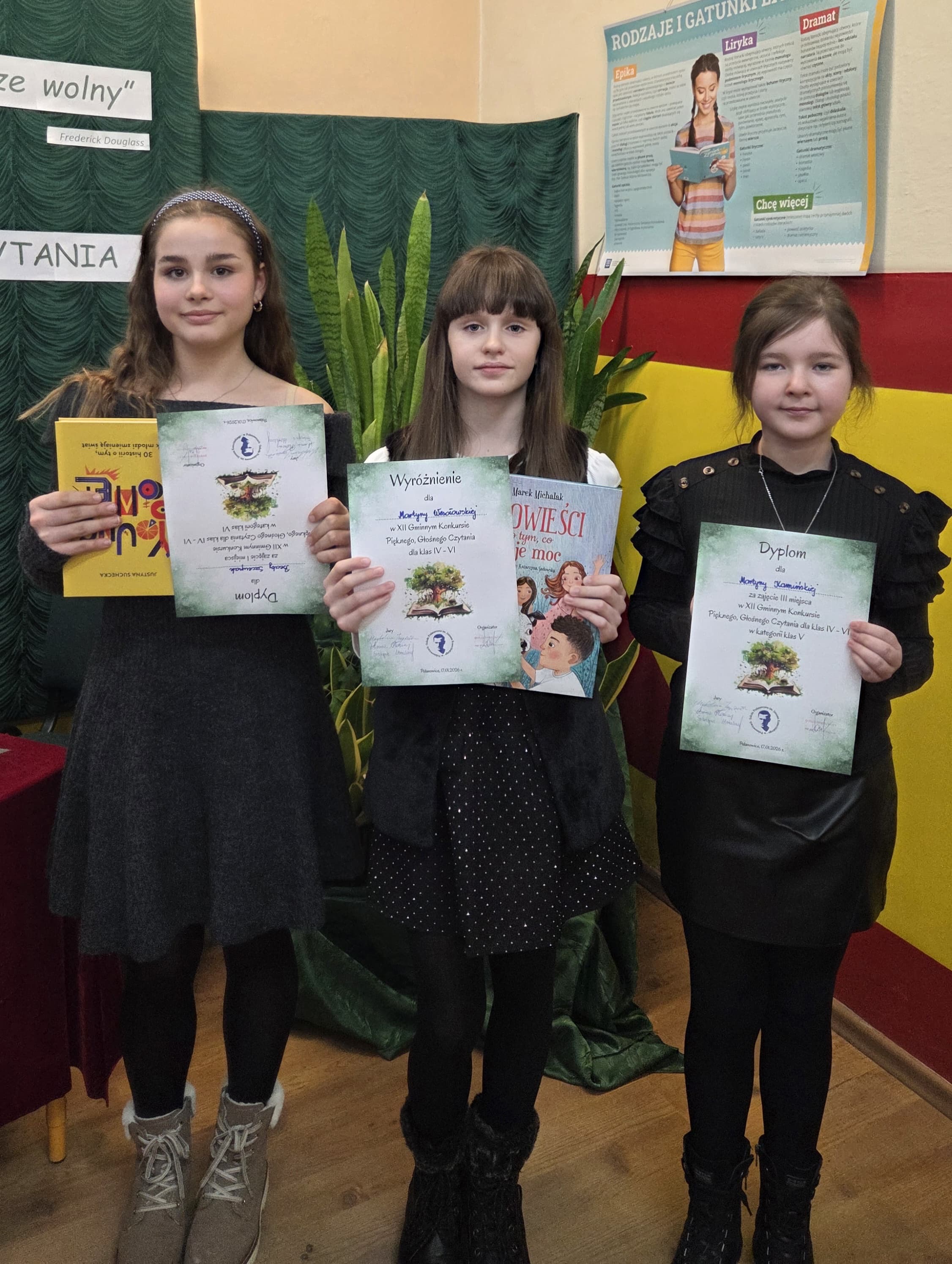 17 stycznia 2026 r. w Szkole Podstawowej im. Janusza Kusocińskiego w Polanowicach odbył się XII Gminny Konkurs Pięknego, Głośnego Czytania dla uczniów klas IV–VI. W wydarzeniu wzięli udział reprezentanci szkół z terenu gminy, prezentując wysoki poziom umiejętności czytelniczych i interpretacyjnych. Miło nam poinformować, że uczennice Szkoły Podstawowej im. M. Patyk w Sławsku Wielkim odniosły znaczące sukcesy w swoich kategoriach: klasy IV – Martyna Wesołowska – wyróżnienie, klasy V – Martyna Kamińska – III miejsce, klasy VI – Beata Szczupak – I miejsce. Serdecznie gratulujemy uczennicom wspaniałych występów oraz dziękujemy za godne reprezentowanie naszej szkoły!