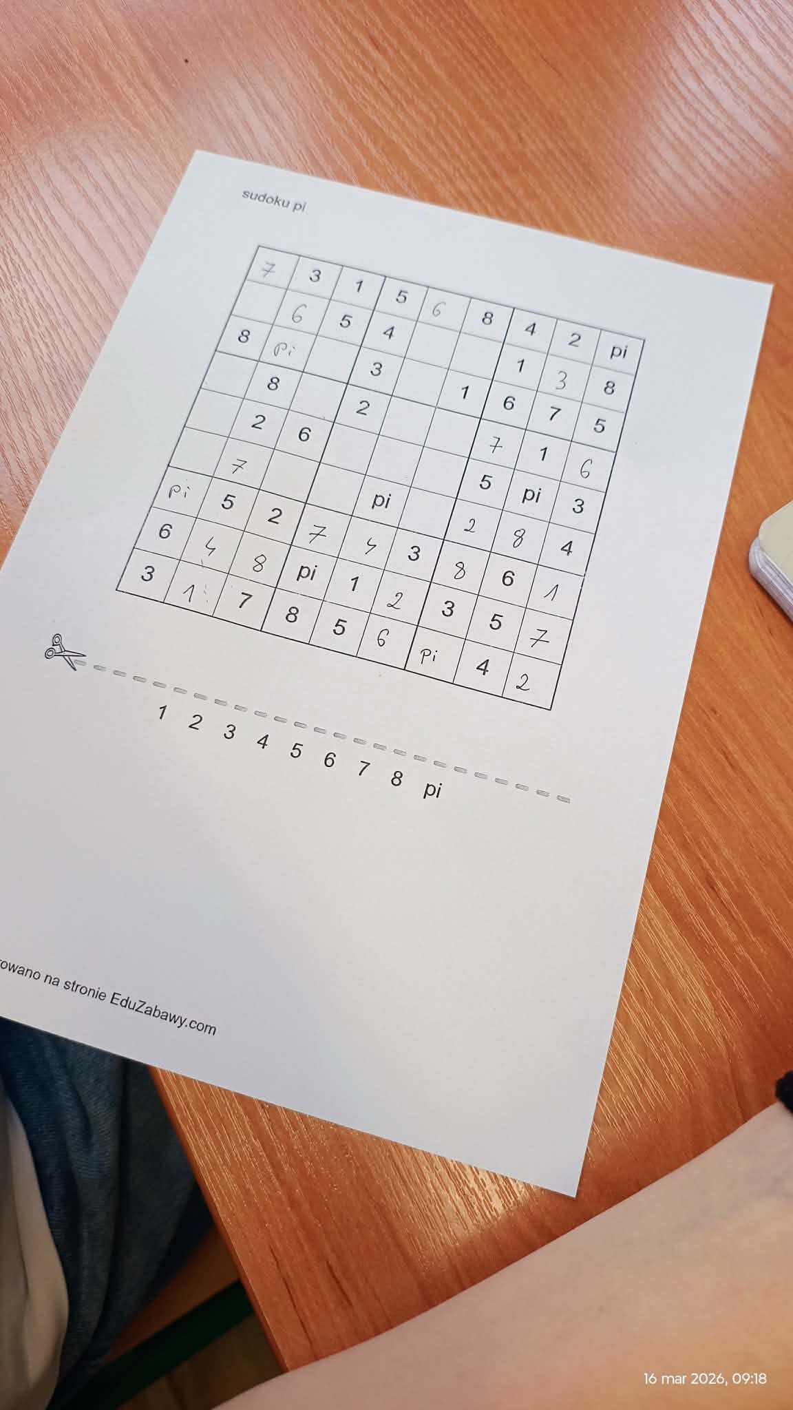 W ramach Tygodnia Mózgu uczniowie mogli sprawdzić swoje umiejÄ™tnoÅ›ci, rozwiÄ…zujÄ…c SUDOKU z liczbÄ… Pi zamiast 9, a także krzyżówki i rebusy matematyczne.