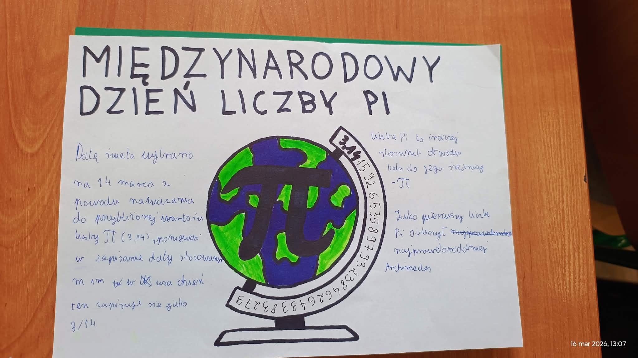 Uczniowie klas 4-8 wykazali siÄ™ ogromnÄ… pomysÅ‚owoÅ›ciÄ… i przygotowali wiele ciekawych projektów zwiÄ…zanych z liczbÄ… π. PowstaÅ‚y m.in. piÄ™kne plakaty, kubki z grawerem liczby Pi, modele liczby Pi z klocków LEGO, prace z drewna, kwiatów, a także modele i wydruki 3D. Nie zabrakÅ‚o również prezentacji i matematycznych ciekawostek.