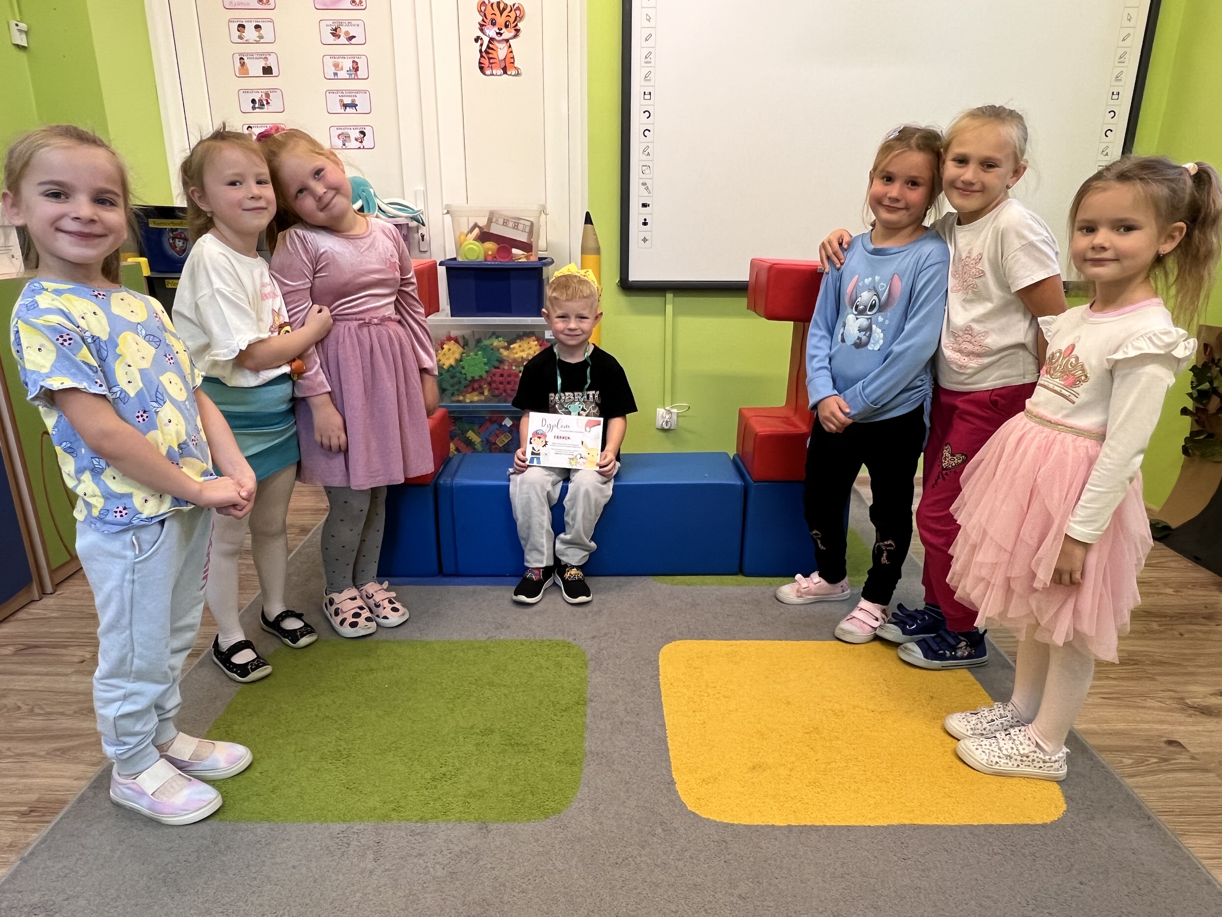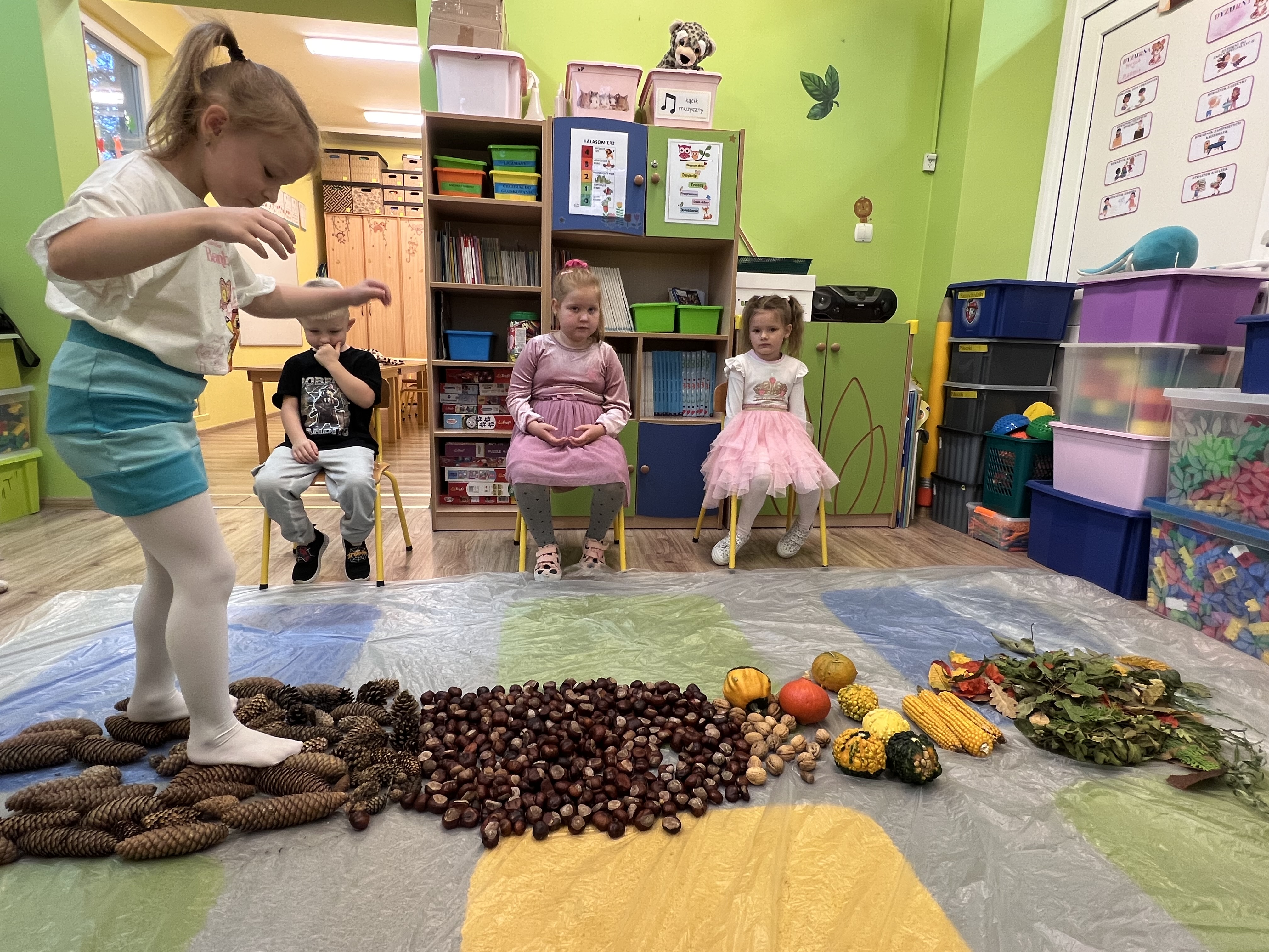Co to był za tydzień! W grupie Tygrysków w mijających dniach działo się naprawdę wiele – od ciekawych eksperymentów i obserwacji, przez radosne zabawy plastyczne, aż po odkrywanie tajników gry w szachy. Dzieci przemierzały jesienny labirynt, poznawały świat wszystkimi zmysłami dzięki ścieżce sensorycznej, a także świetnie bawiły się podczas Dnia Chłopaka. Nie zabrakło też emocji przy wspólnej grze„Ja mam, kto ma?”, która przyniosła mnóstwo uśmiechu. Był to tydzień pełen jesiennych barw, nowych doświadczeń i niezapomnianych chwil!