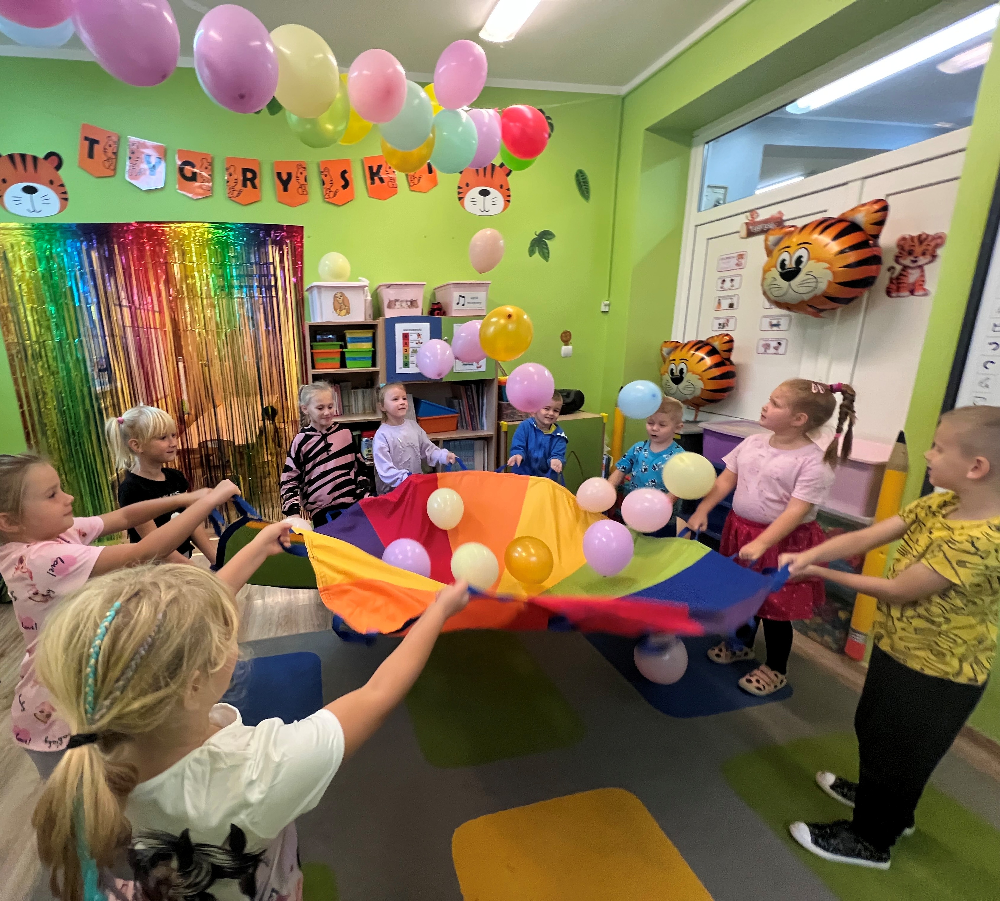 Tańce, zabawy i uśmiechy od ucha do ucha – w takiej atmosferze dzieci z grupy „Tygryski” świętowały Ogólnopolski Dzień Przedszkolaka, czyli jedno z najważniejszych wydarzeń w ciągu roku przedszkolnego. Na przedszkolaków czekały ciekawe konkurencje, odrobina sportowej rywalizacji oraz radosne pląsy przy muzyce. Na pamiątkę swojego święta każde dziecko otrzymało dyplom. Poprzez te działania nasza grupa włączyła się w ogólnopolską akcję: „Dzień Przedszkolaka to ważne święto – uczcijmy je razem tańcem i piosenką”, organizowaną pod patronatem Bliżej Przedszkola. Życzymy wszystkim dzieciom, aby czas spędzony w naszym przedszkolu był niezapomnianą przygodą, pełną radości i wspaniałych wspomnień.