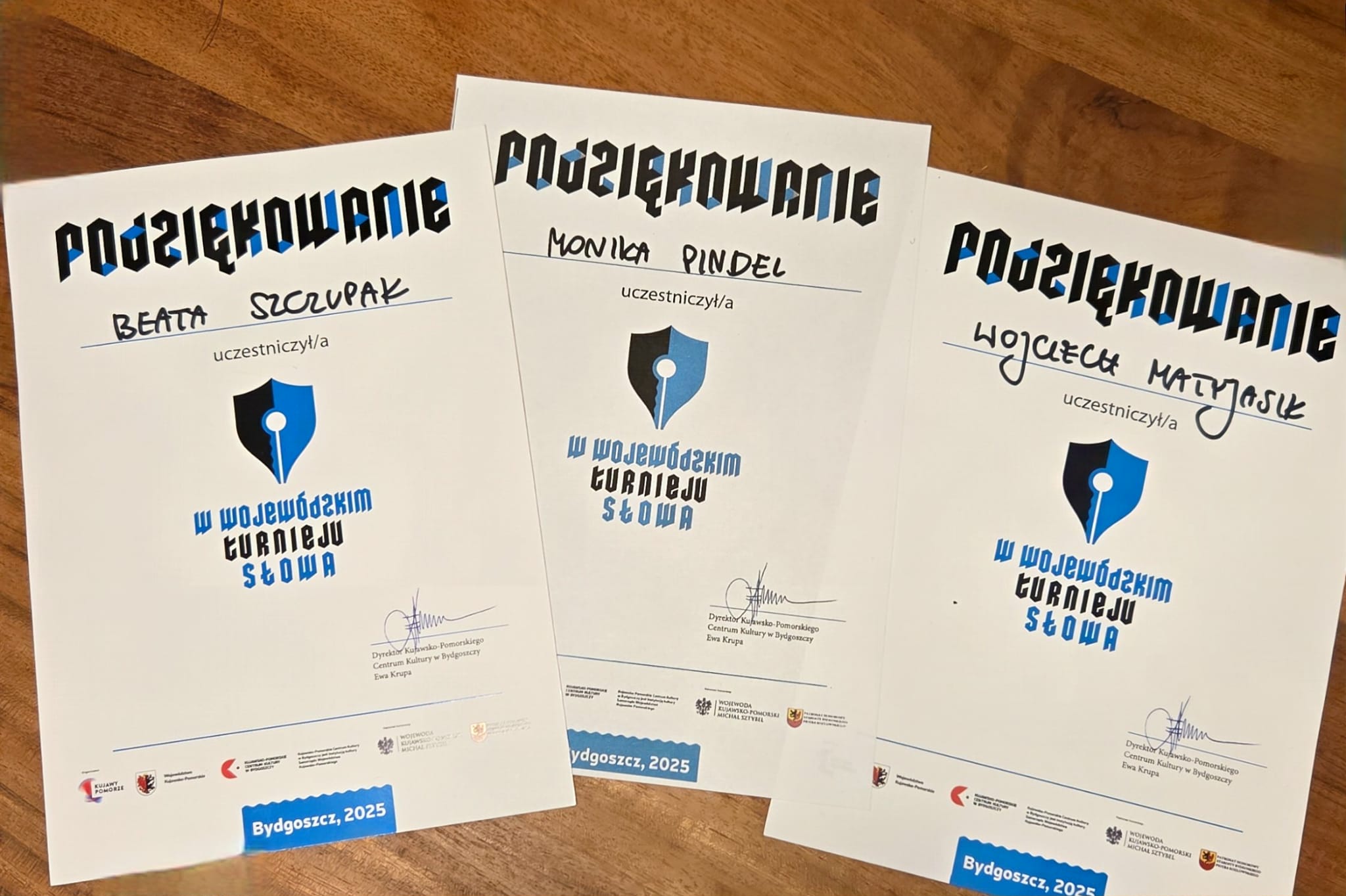 W piątek i sobotę, 28 i 29 listopada, w Bydgoszczy odbył się Wojewódzki Konkurs Turniej Słowa. Naszą szkołę oraz gminę Kruszwica reprezentowali w finale: Beata Szczupak, Wojciech Matyjasik oraz Monika Pindel.