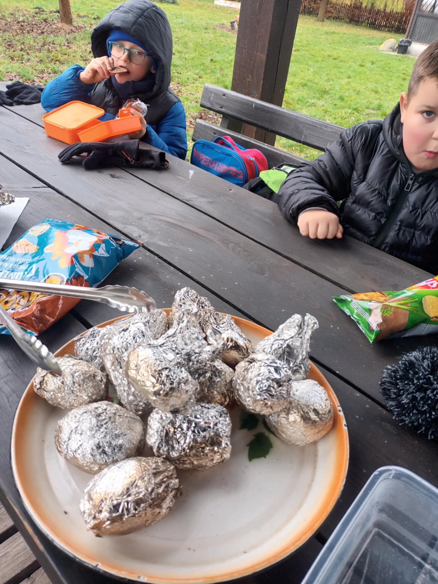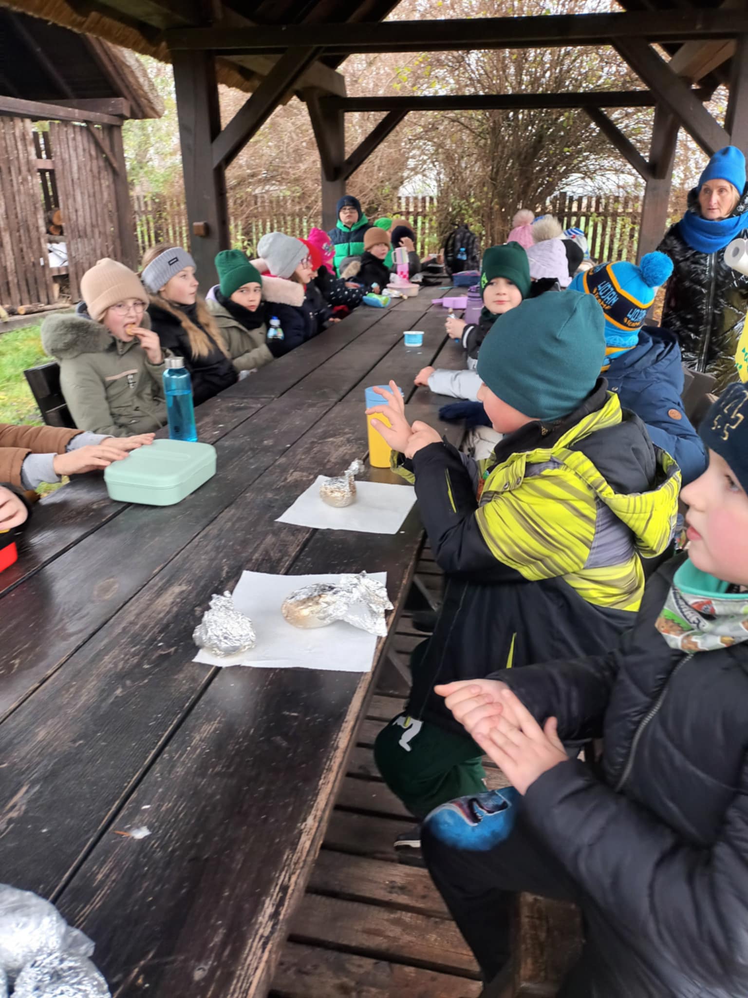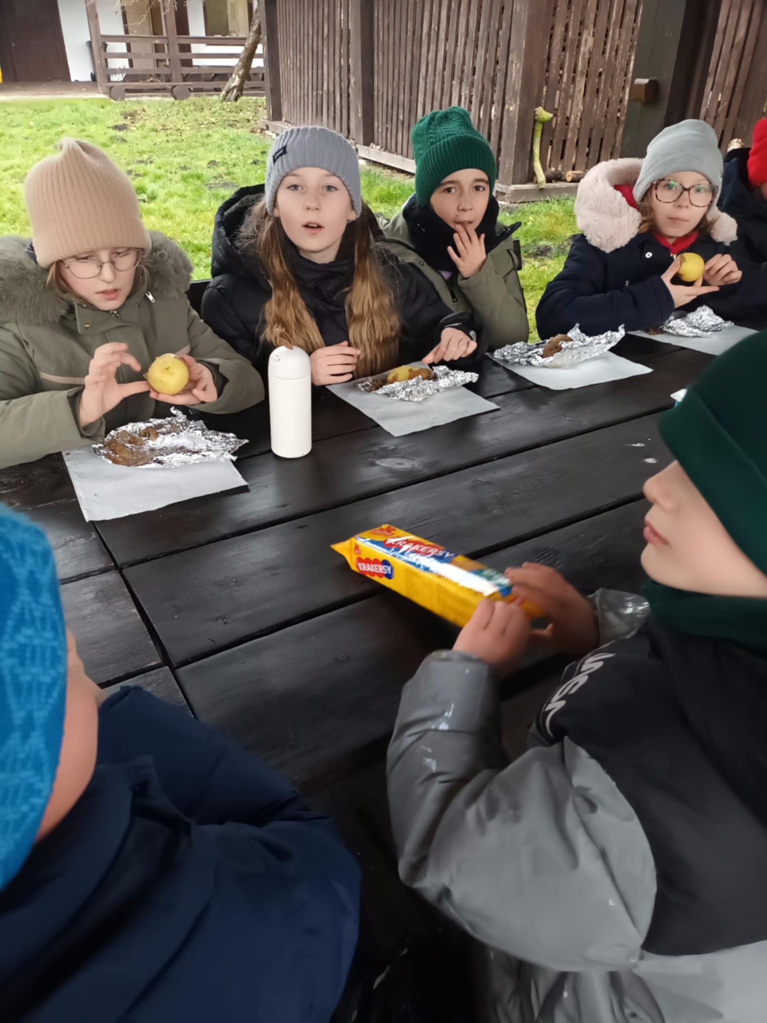 Podczas wizyty dzieci wzięły udział w ciekawej grze terenowej, która pozwoliła im na aktywne poznawanie otaczającej przyrody. Po intensywnych zajęciach na świeżym powietrzu, wszyscy spotkali się przy ognisku, aby posmakować pieczonych ziemniaków i spędzić czas na wspólnej integracji.