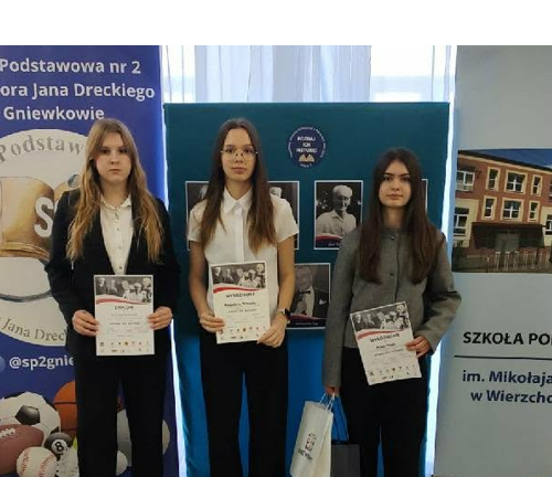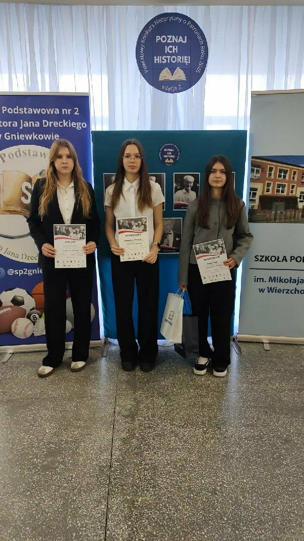 Świetnie spisały się nasze uczennice w Powiatowym Konkursie Historycznym o Patronach Roku 2026. Konkurs odbył się w Gniewkowie pod patronatem honorowym Starosty Inowrocławskiego Wiesławy Pawłowskiej.